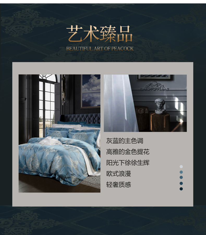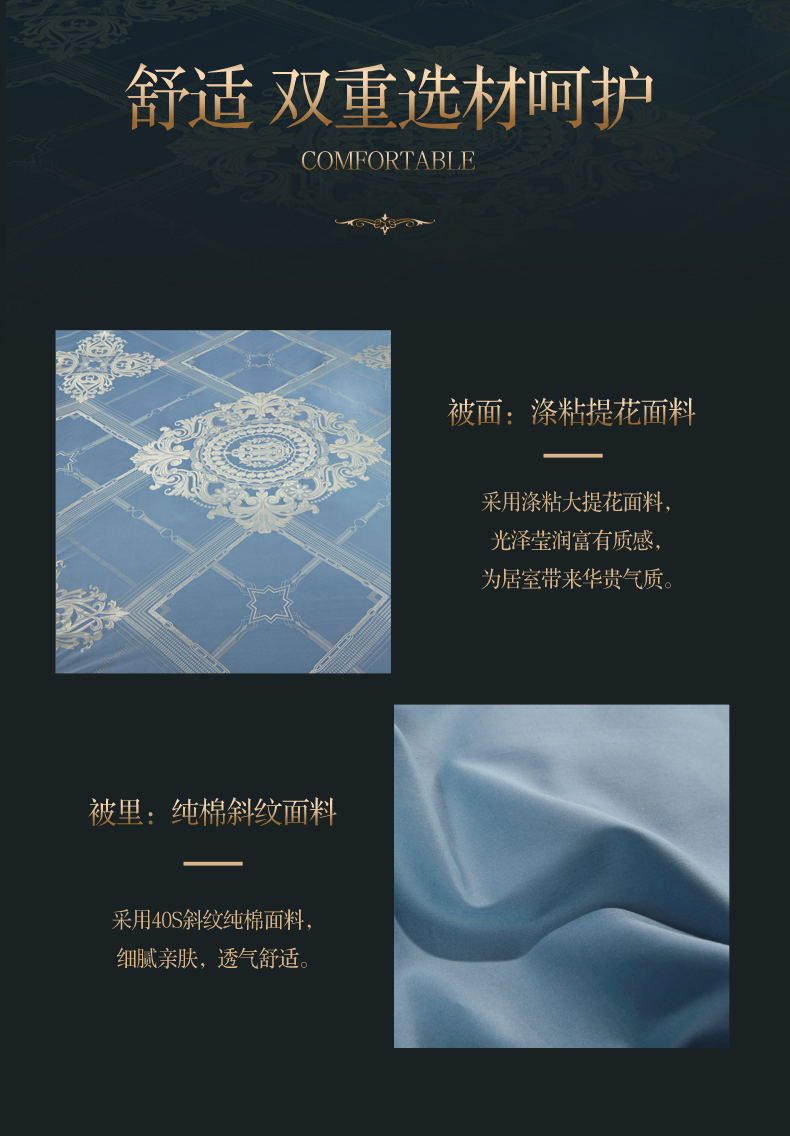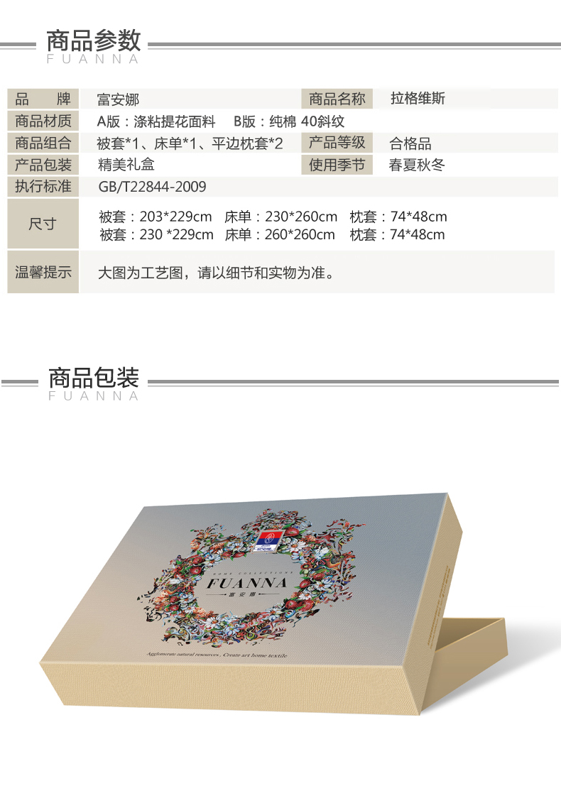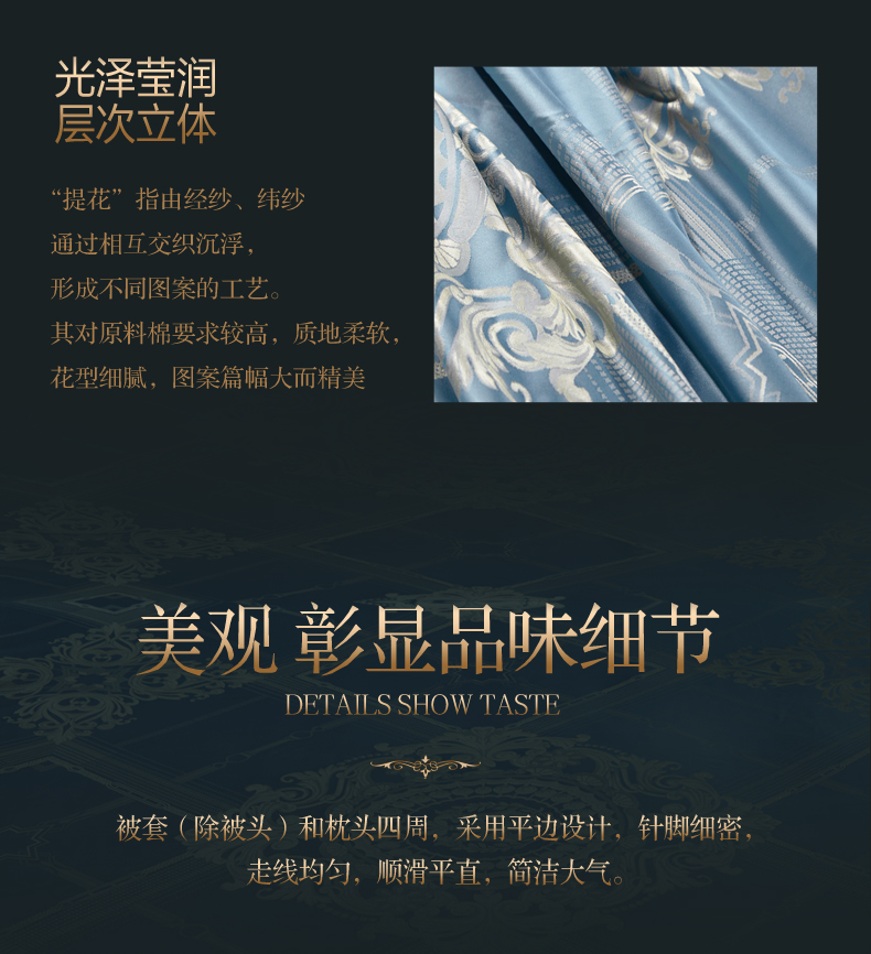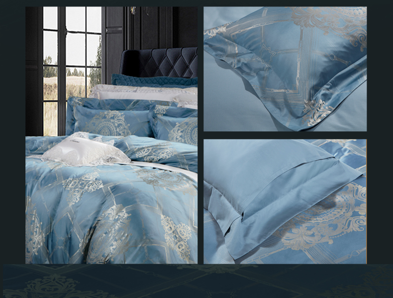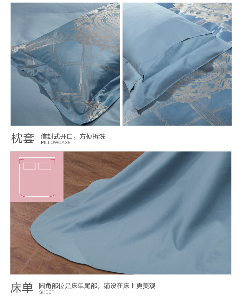 富安娜 欧式提花床单款四件套 拉格维斯素提 203*229CM 1.5米 蓝色(单位:套)