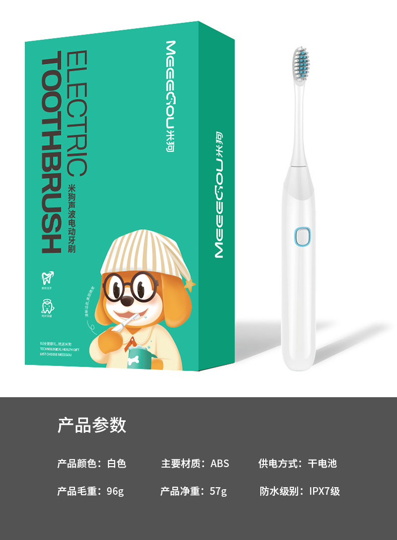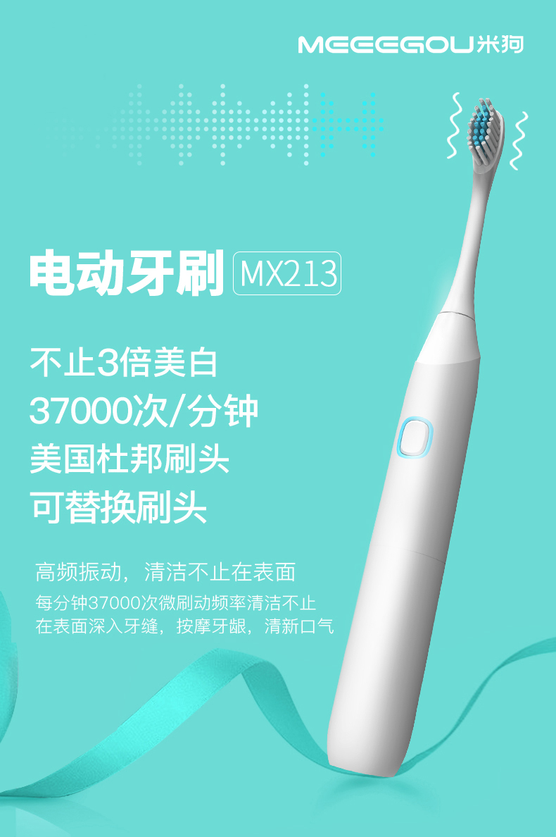 米狗(MEEE GOU) 电动牙刷 MX213 37000次/分钟 白色(单位:支)