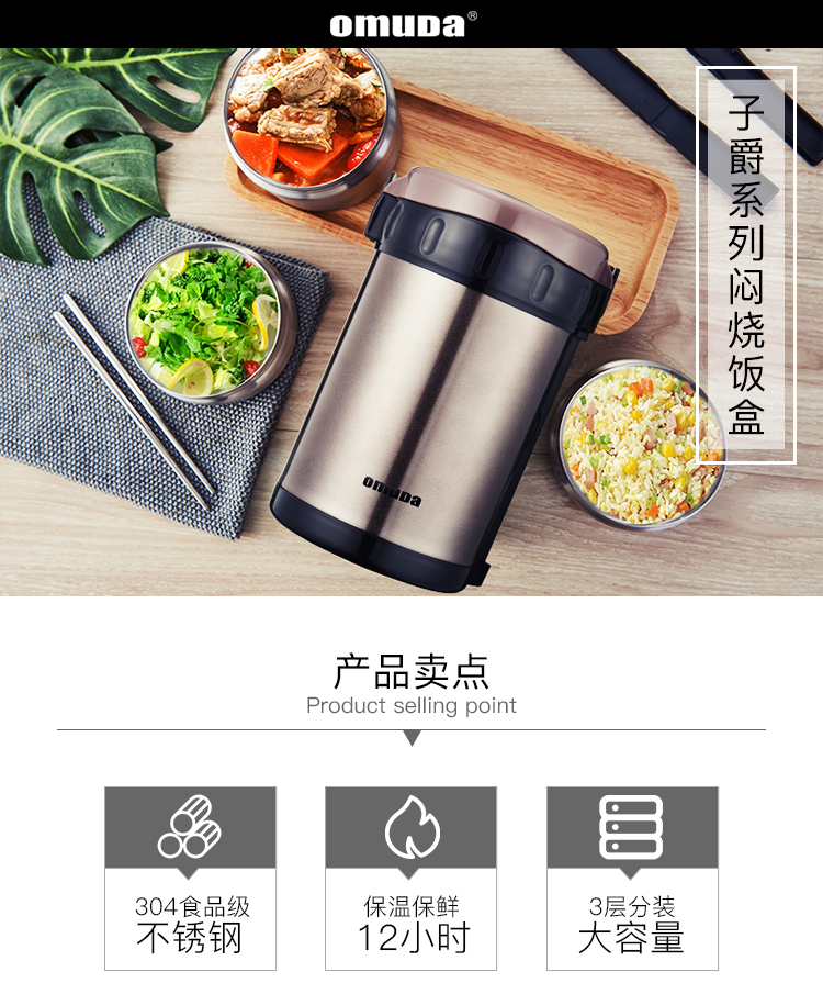 欧美达公爵系列-焖烧饭盒1600mlGJM03 钢色 月光灰