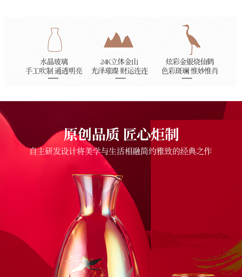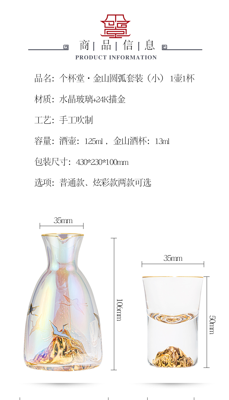 个杯堂金山「经典」水晶酒具 1壶1杯(炫彩款) 酒杯酒具