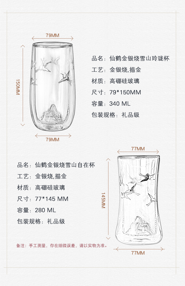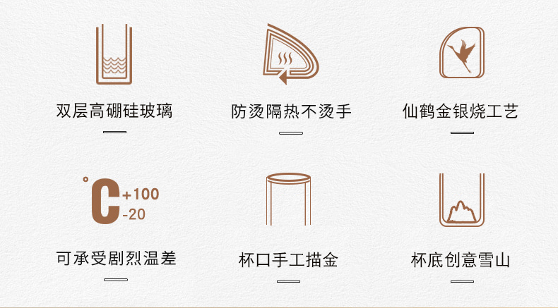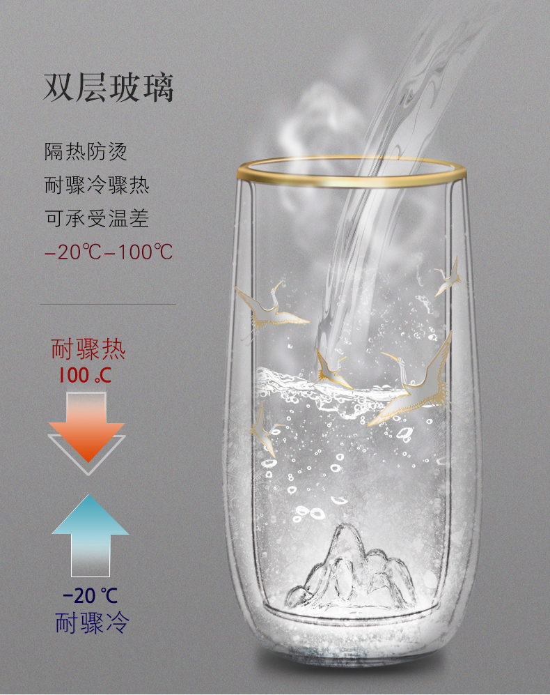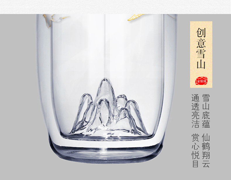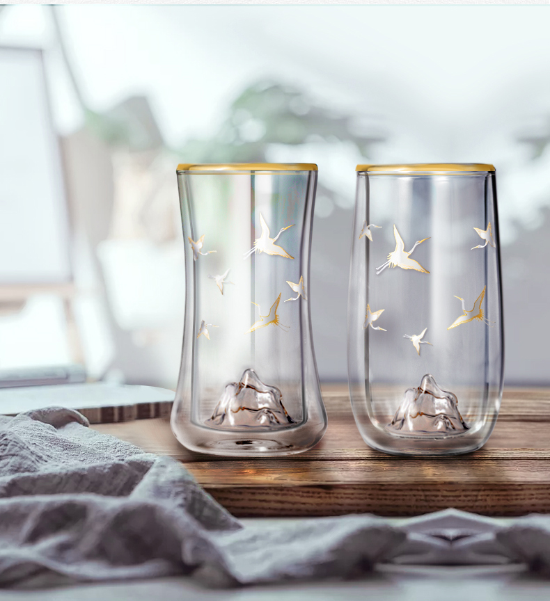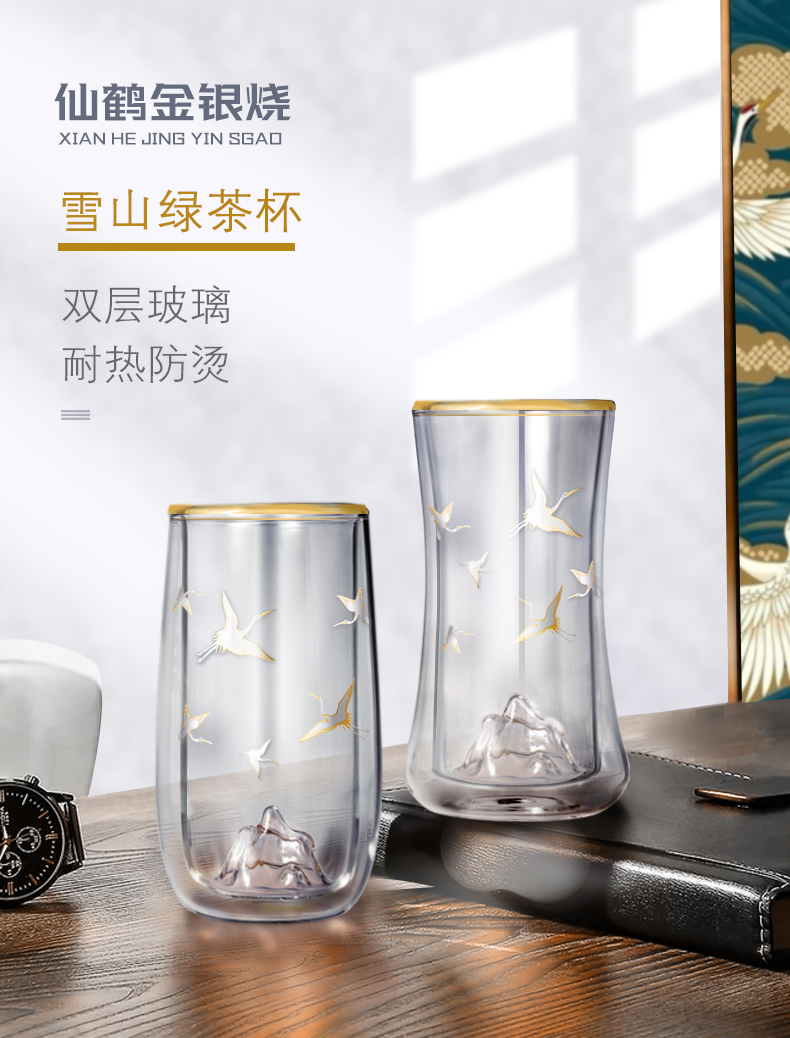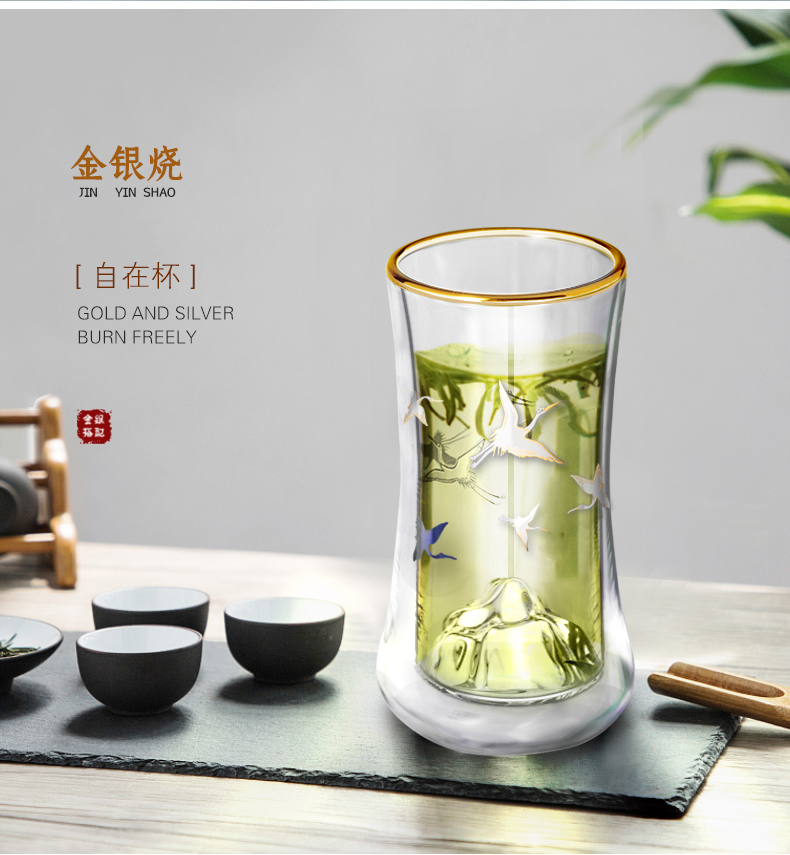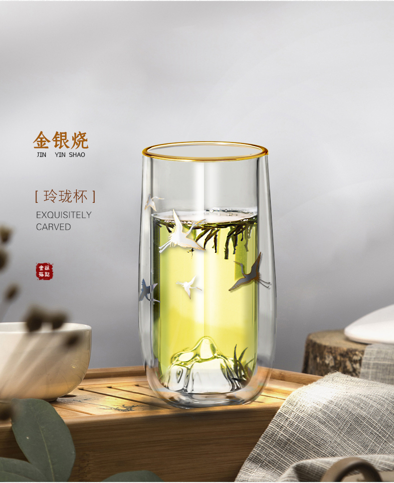 个杯堂金银烧仙鹤双层玻璃杯(玲珑款自在款 两款可选) 银色 玻璃杯