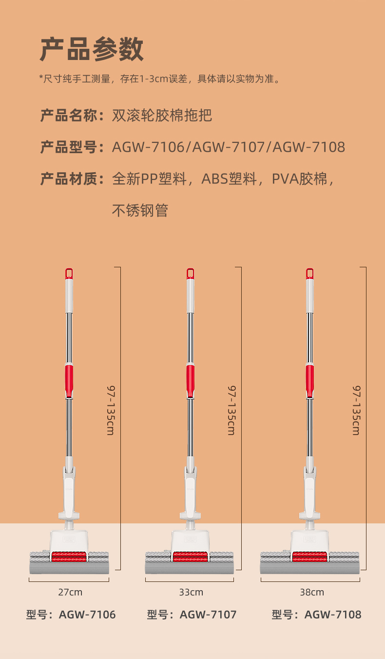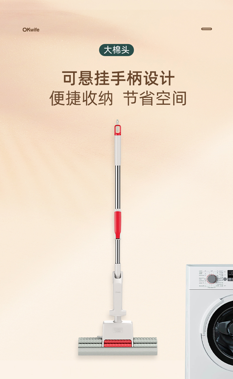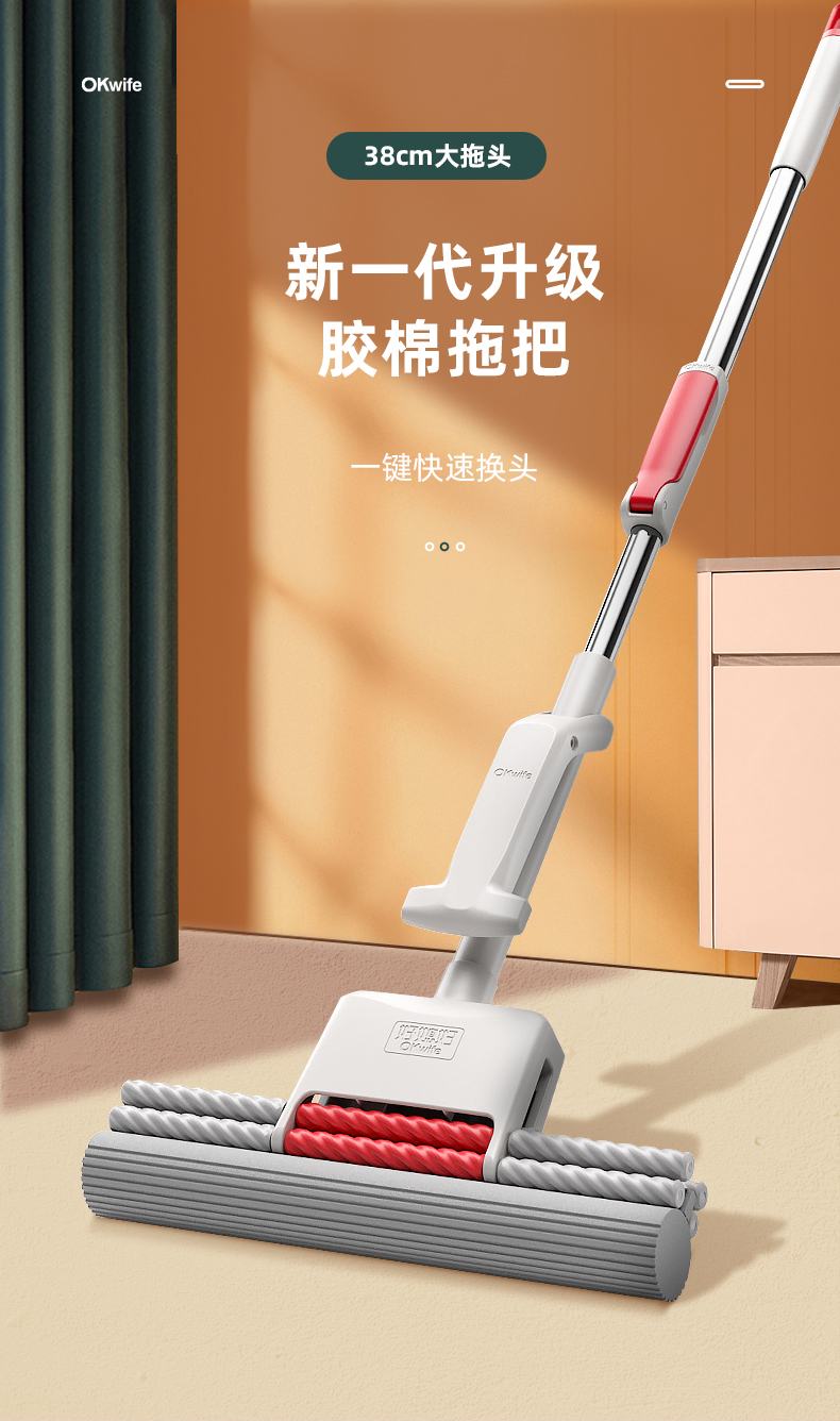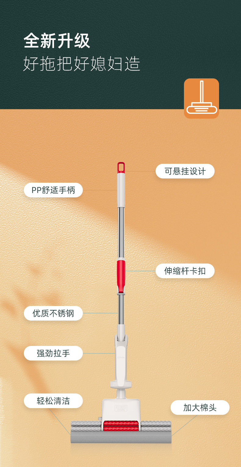好媳妇胶棉拖把伸缩杆27CMHD-7106(单位:个) 本白色