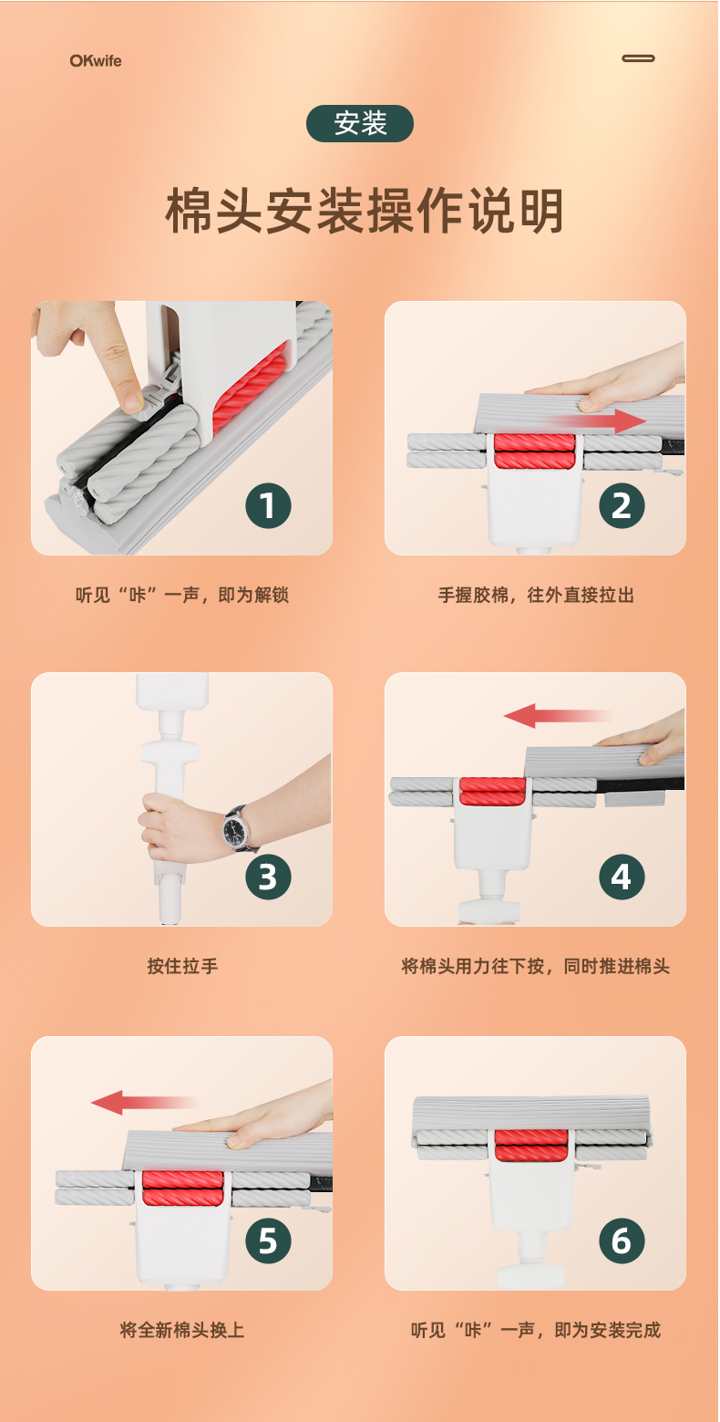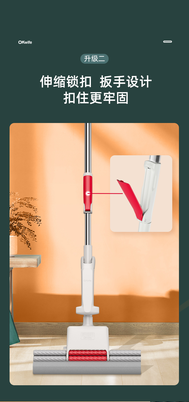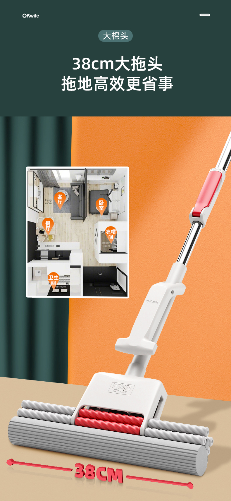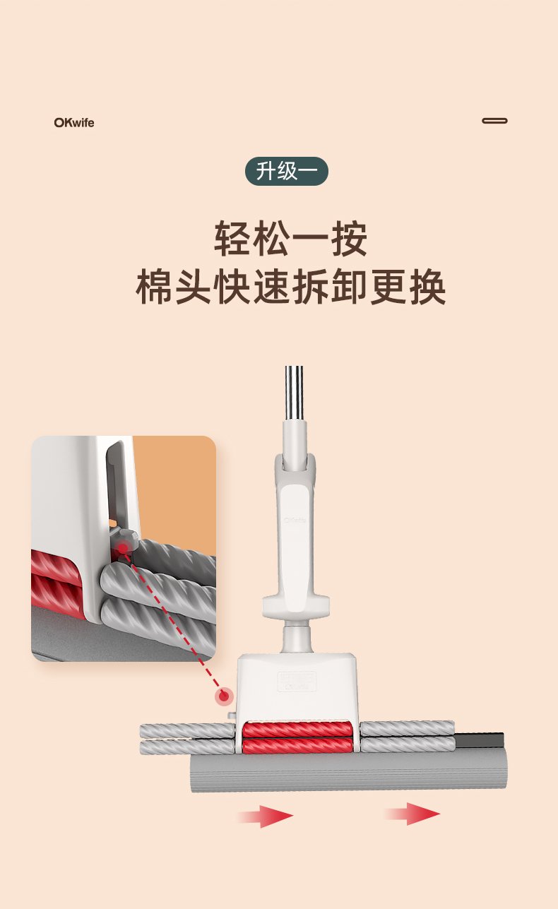 好媳妇胶棉拖把伸缩杆27CMHD-7106(单位:个) 本白色