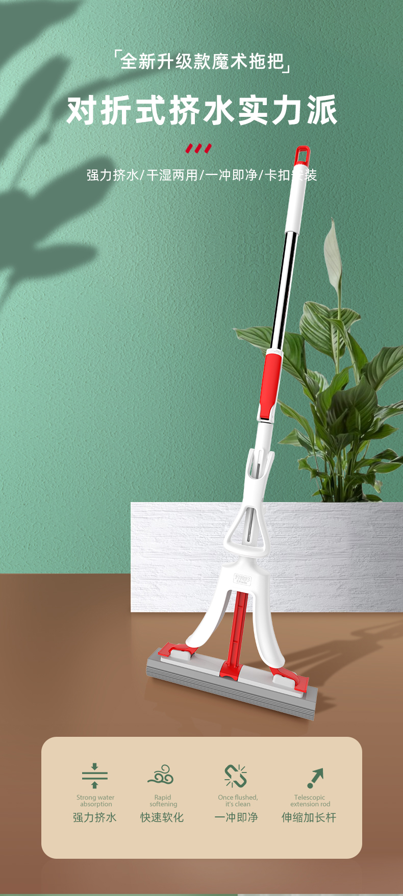 好媳妇魔术拖把伸缩杆33CM/HD-7204(单位:个) 本白色