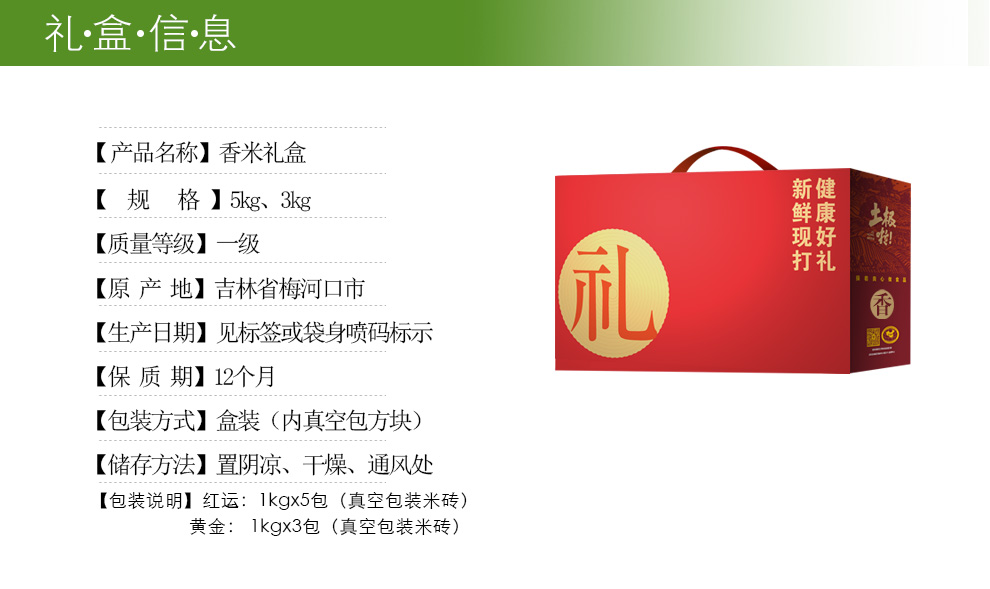 土极啦稻花香香米礼盒东北大米现打香米黄金礼盒3kg 图片色 图片色