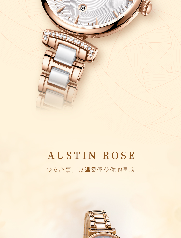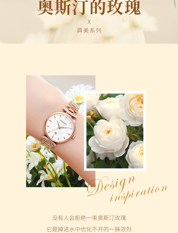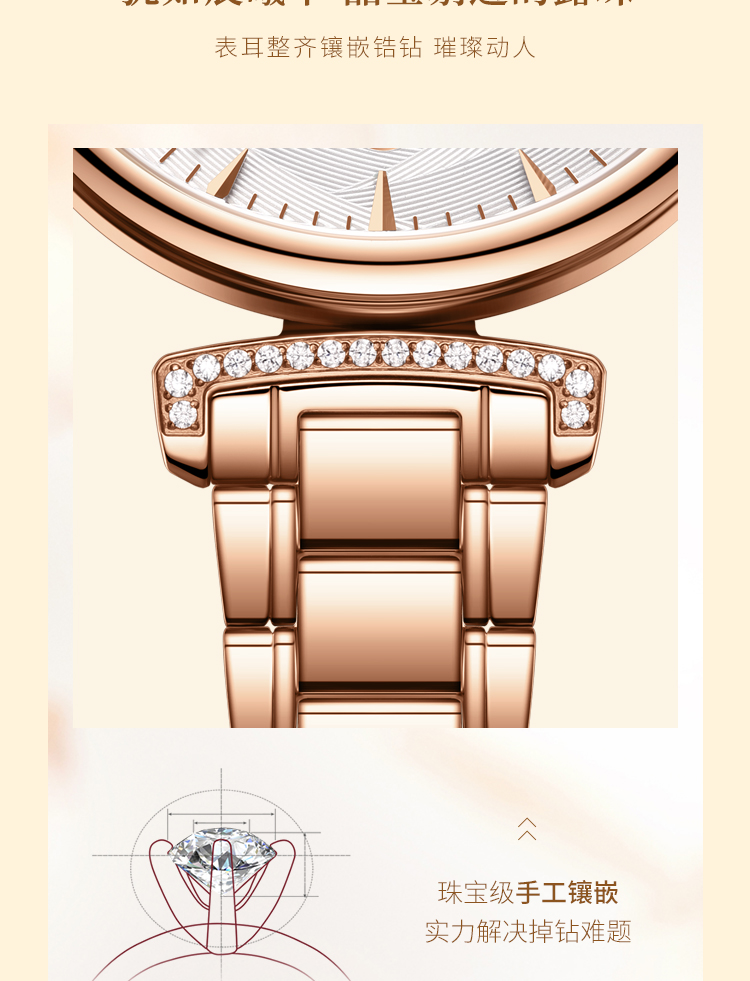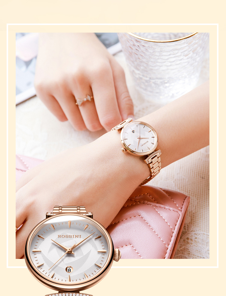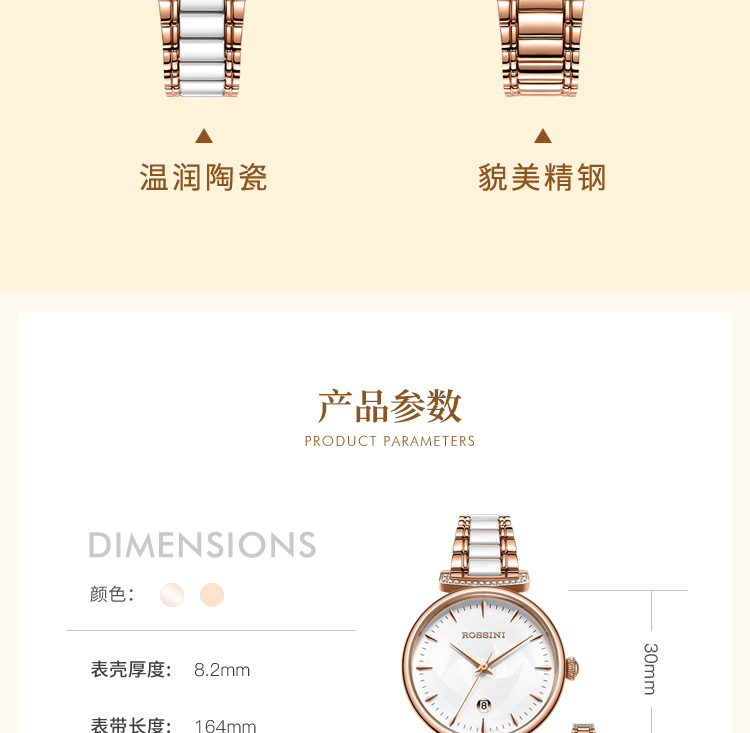 Rossini罗西尼 典美系列 石英手表白盘玫瑰金陶瓷钢带女表50034G01A(单位:块) 白色