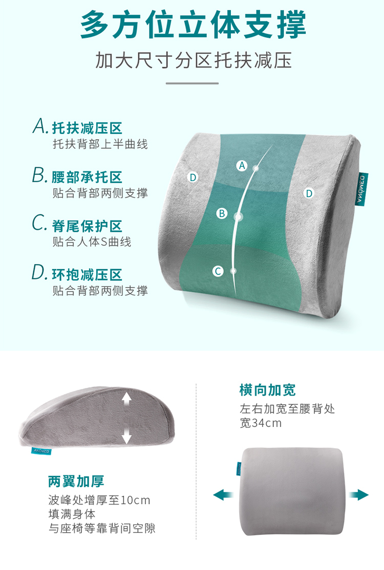 艾那美ANOMEO符合人体工程学的背靠枕2408 浅灰色