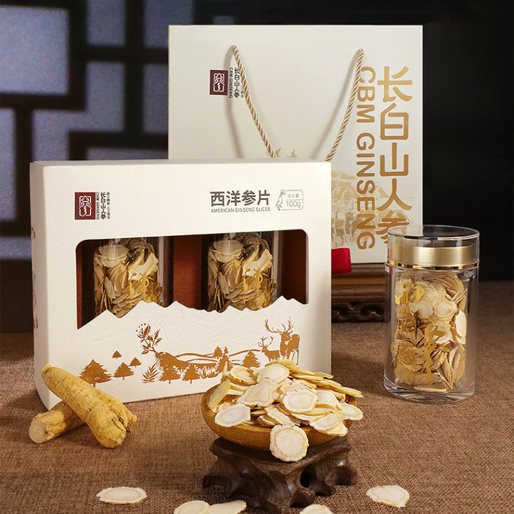 长白山人参 西洋参片(礼盒2瓶装) 本白色