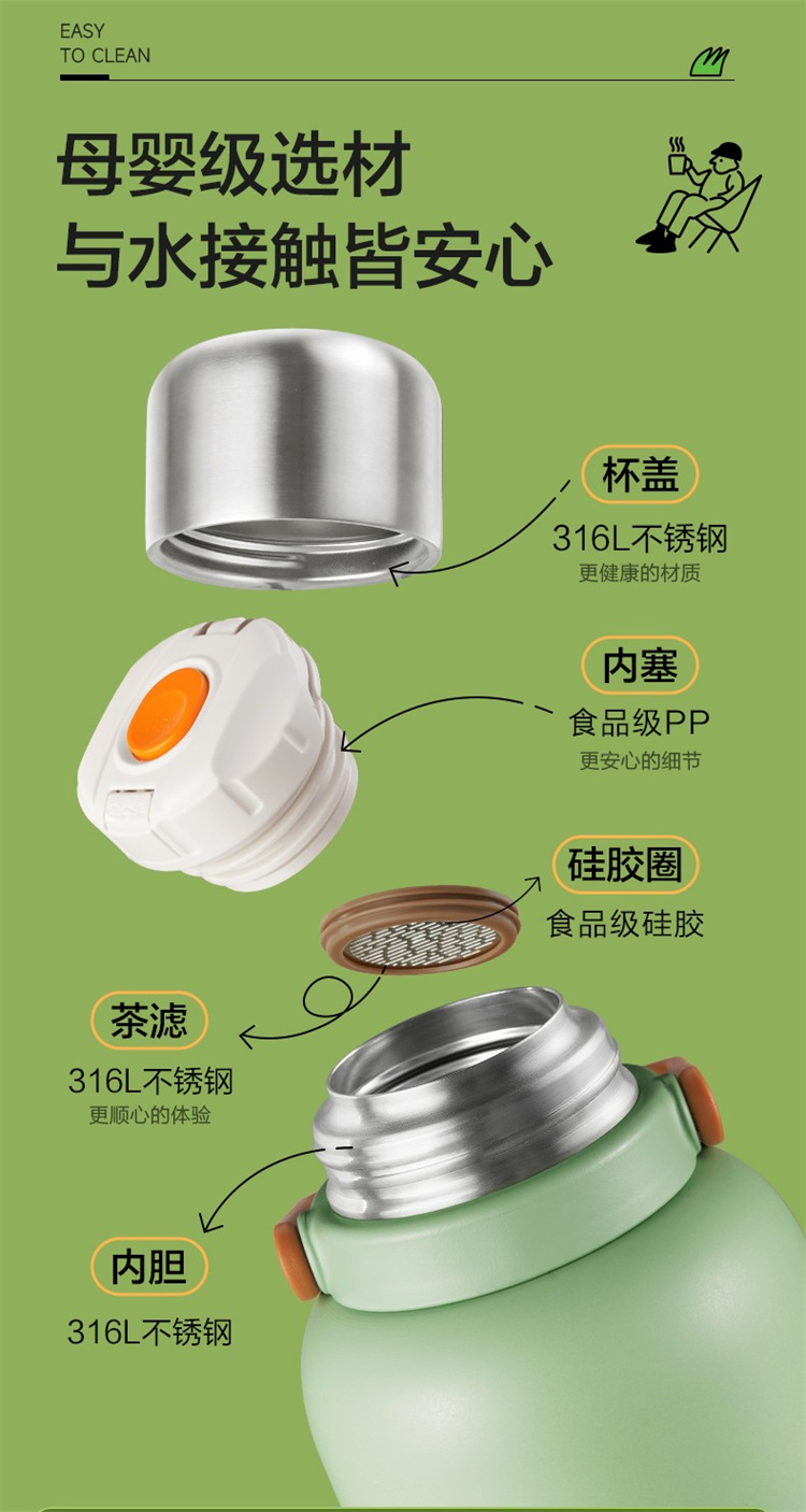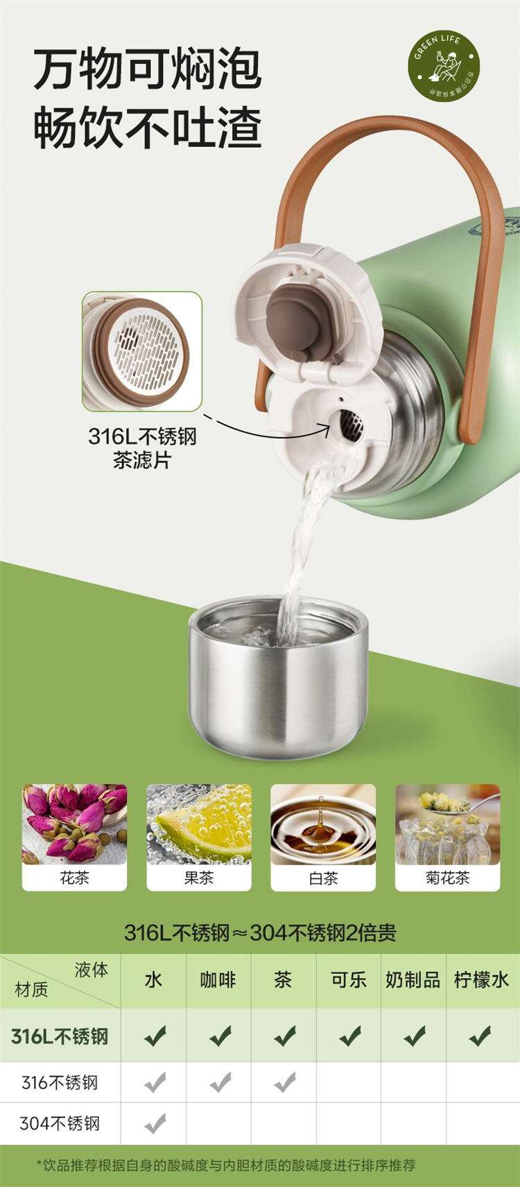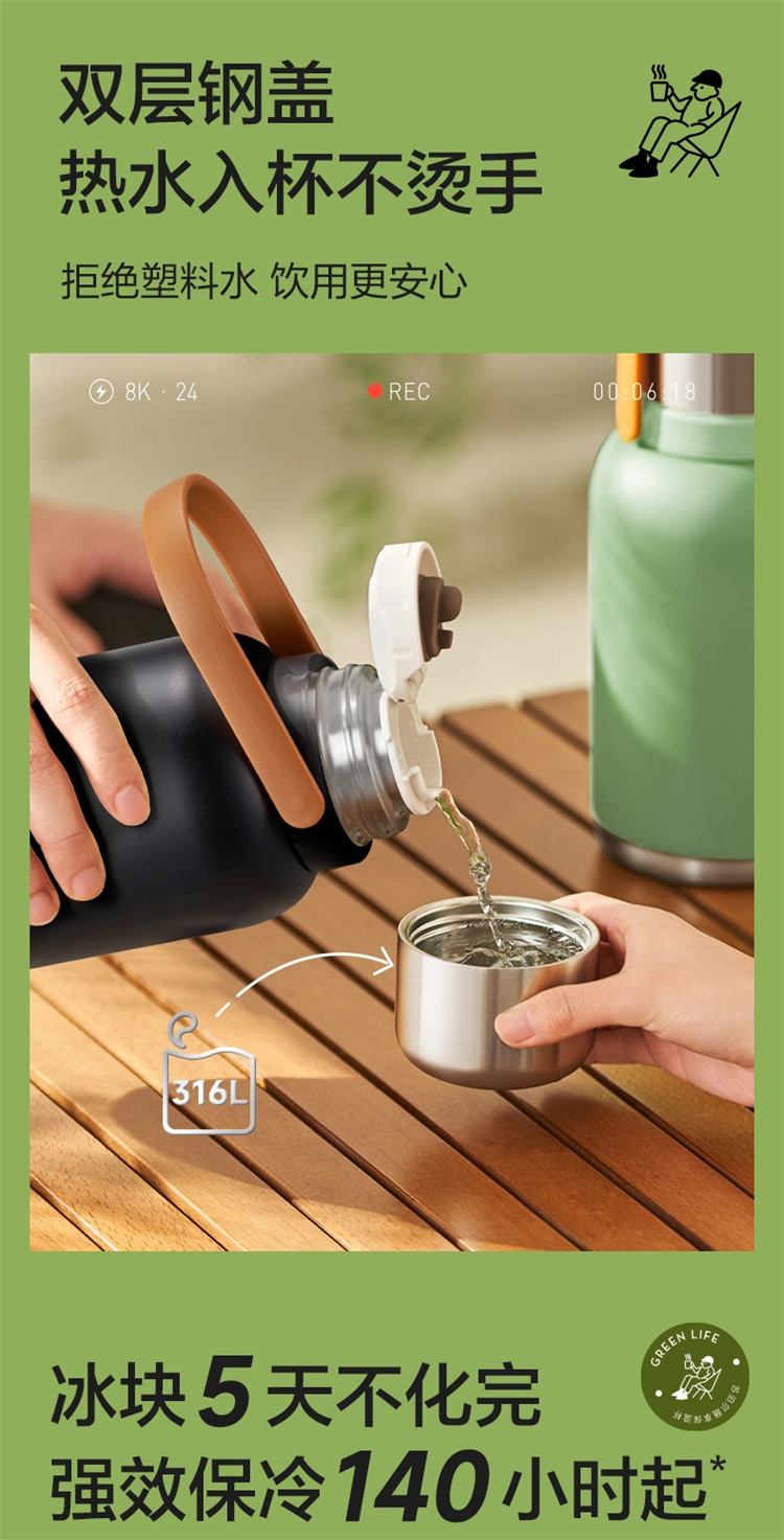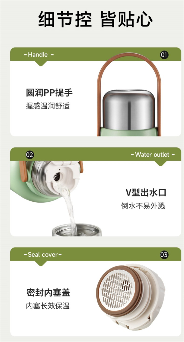 苏泊尔(SUPOR)316不锈钢 大容量随享保温壶1.3L.KCV13AC10(个) 高山绿