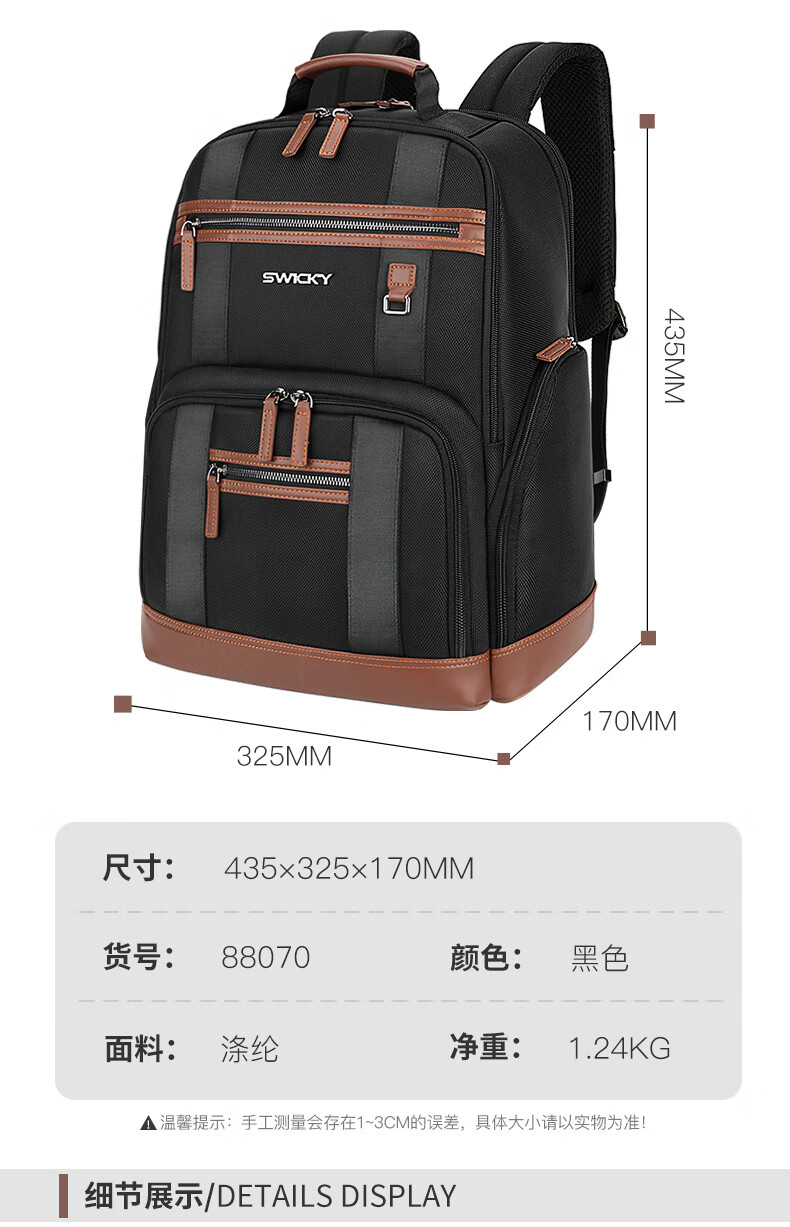 SWICKY 多功能大容量 商务双肩包 88070 单位:个 黑色
