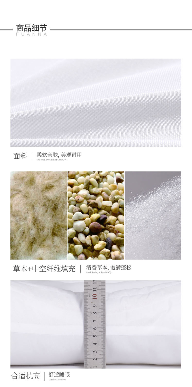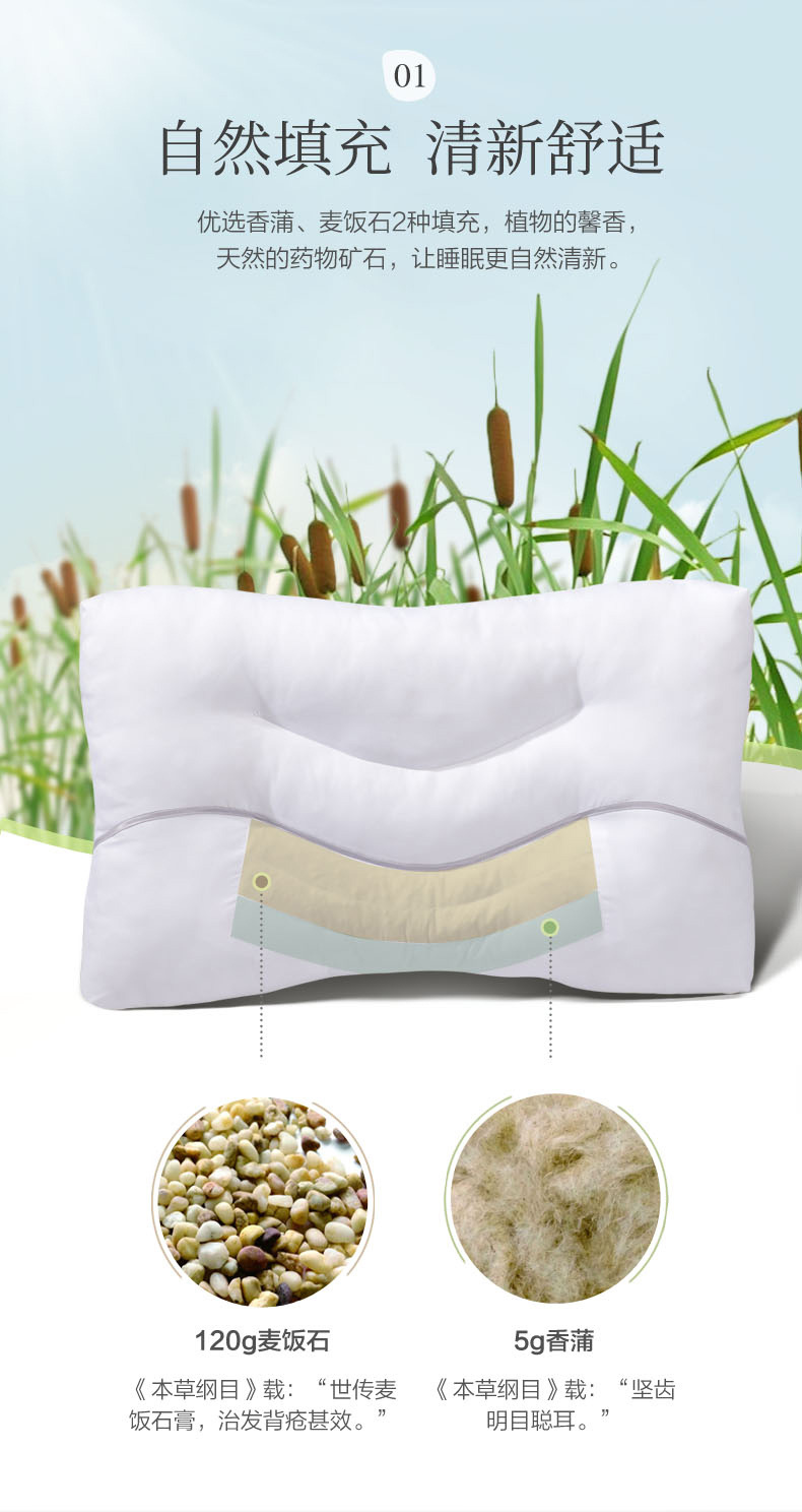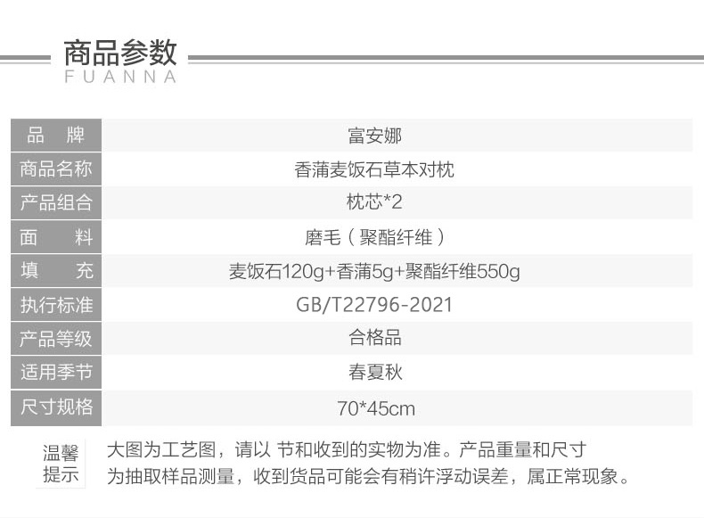 富安娜香蒲麦饭石草本抗菌对枕/70*45cm(单位:对) 白色