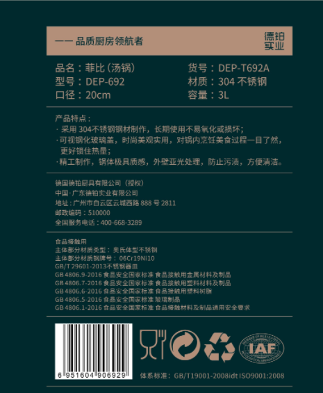 Debo德铂菲比DEP-692 304不锈钢汤锅(单位:个) 不锈钢色