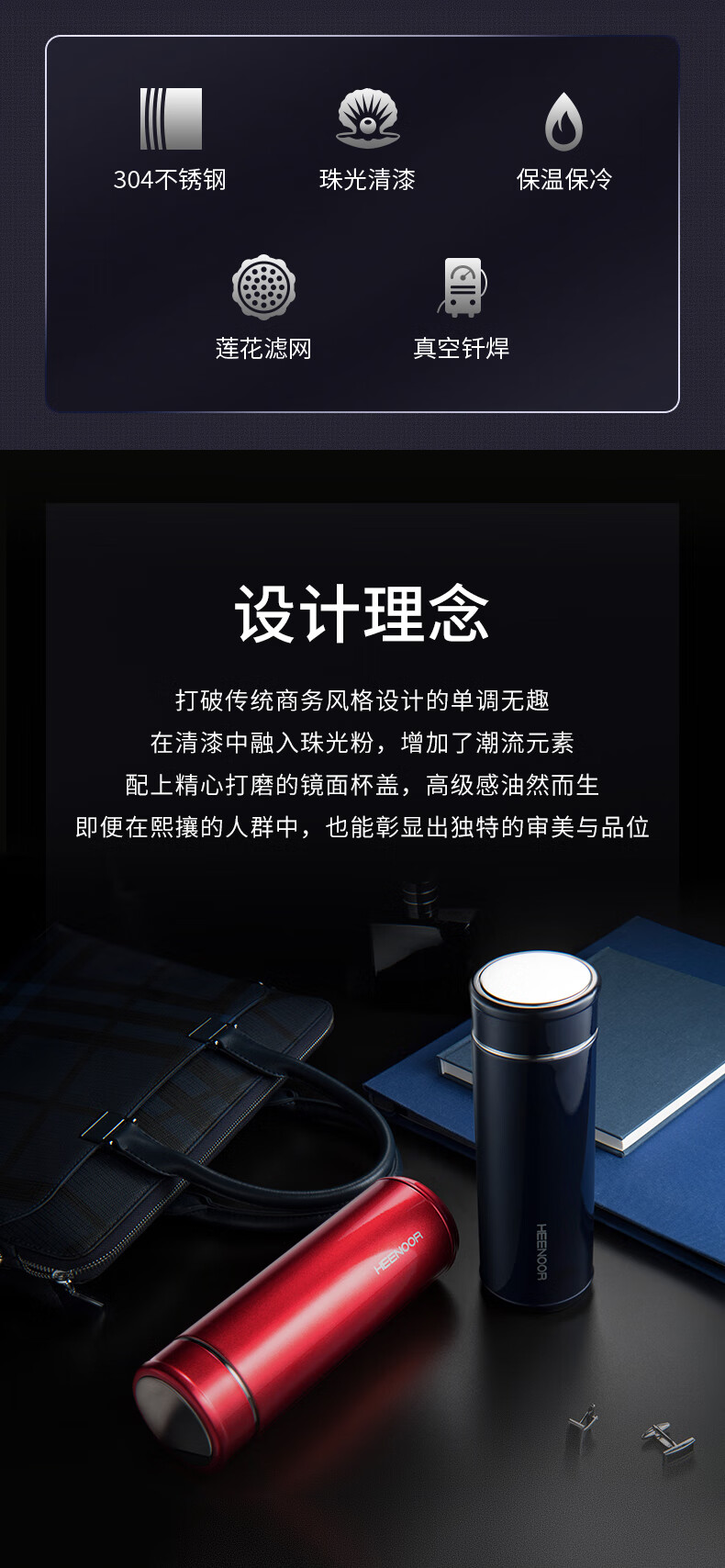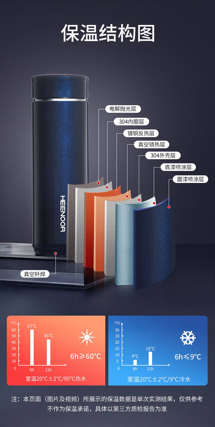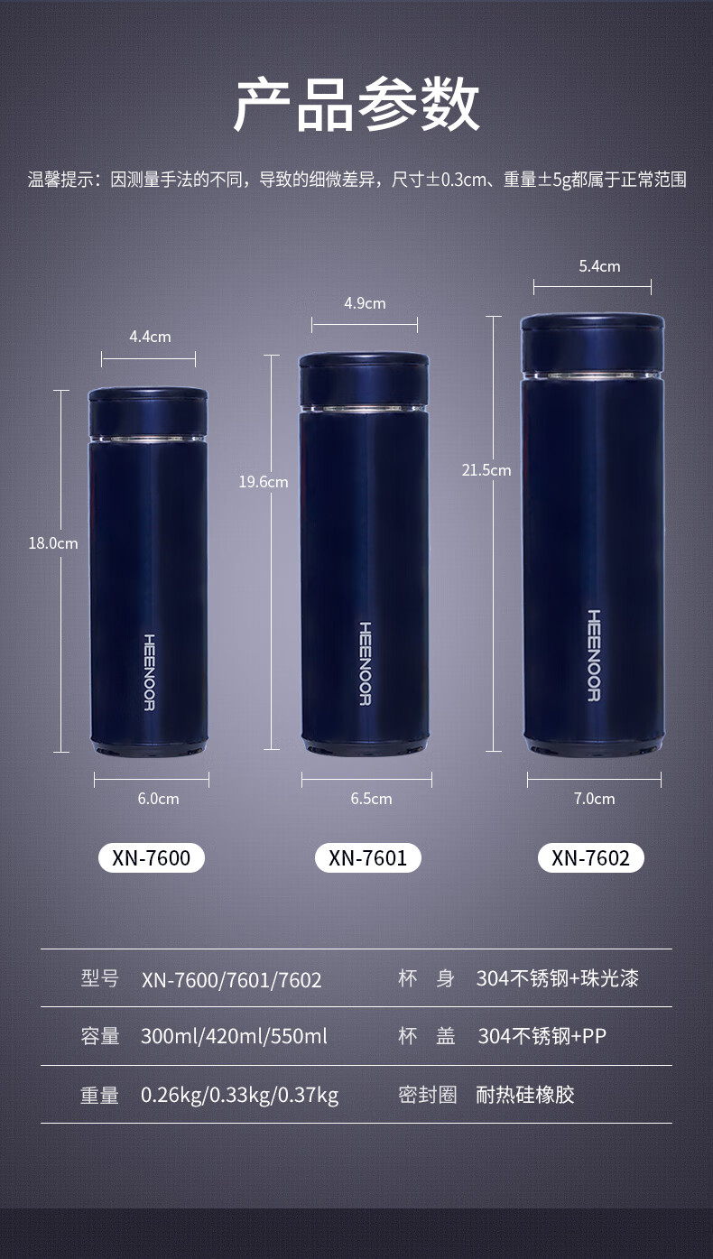 希诺(HEENOOR) XN-7601 保温杯 蓝色(单位:个)