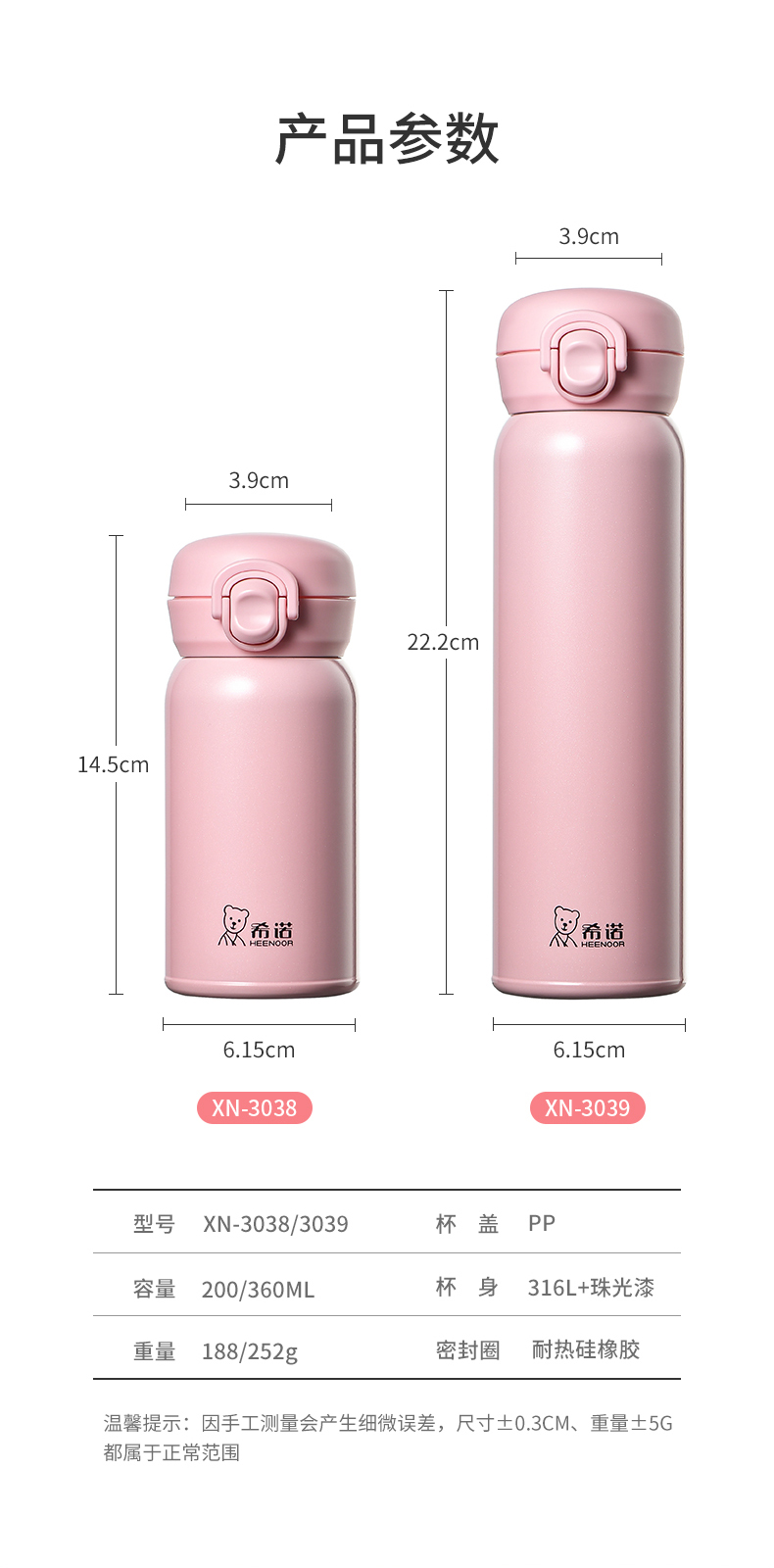 希诺真空弹跳保温杯 XN-3039 360ml(单位:个)