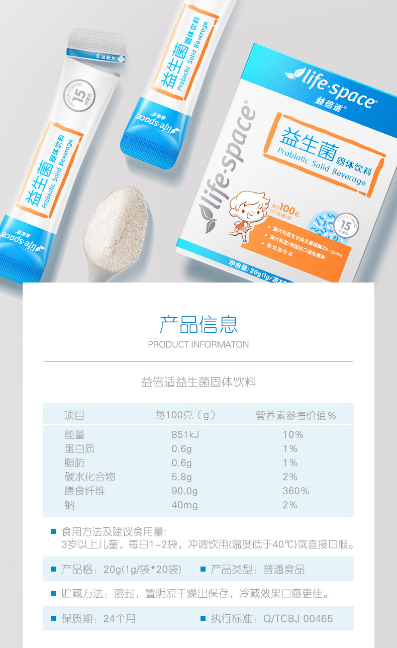 Life-Space益生菌固体饮料(儿童型)(20袋)3岁以上儿童益生元 单位 盒 橙色