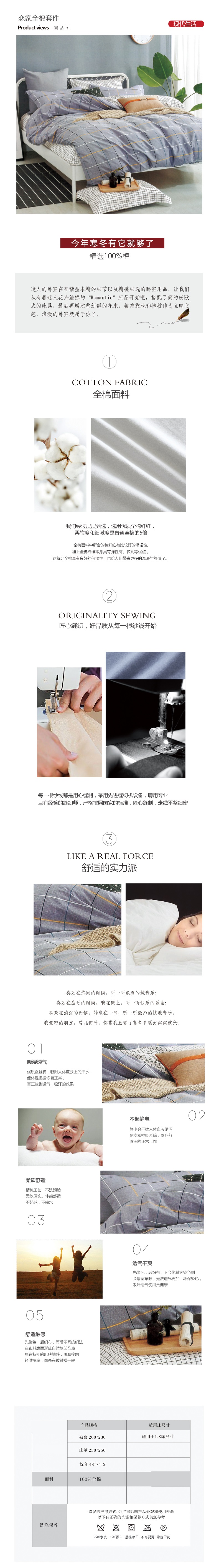 金丝莉恋家全棉套件 现代生活200×230cm(套) 灰色