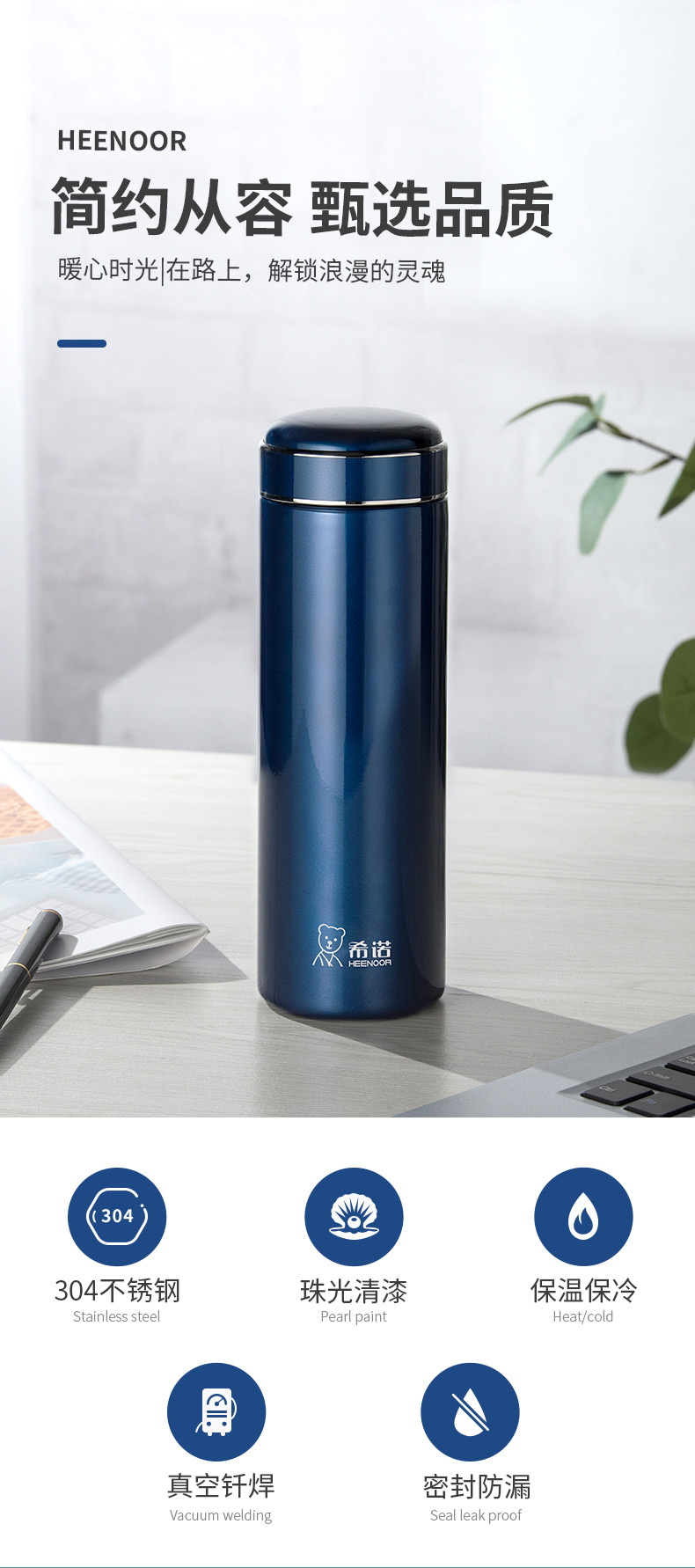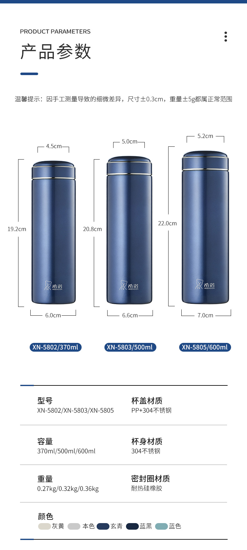 希诺保温杯XN-5805 个 玄青色