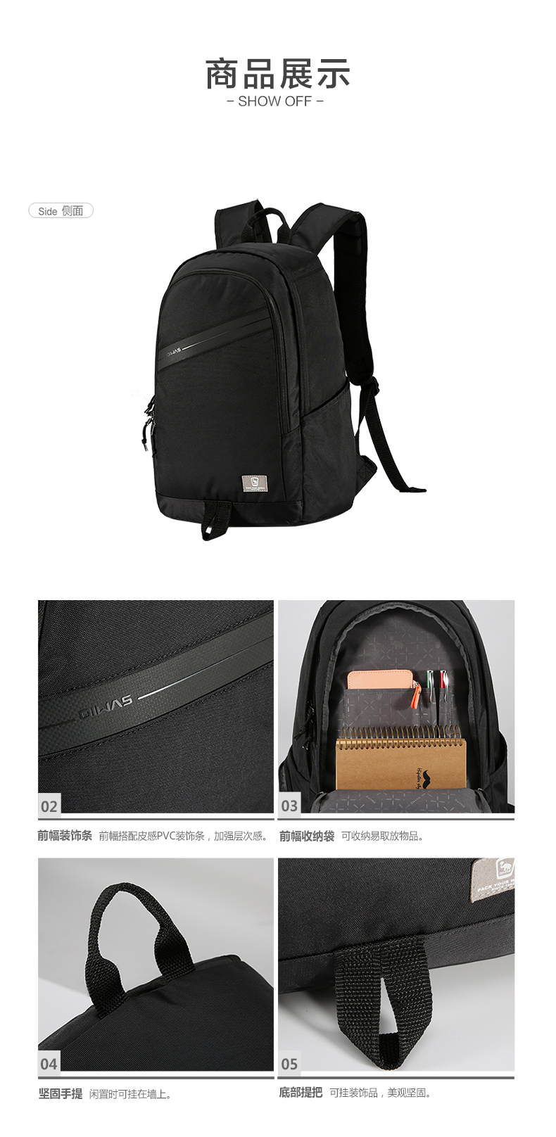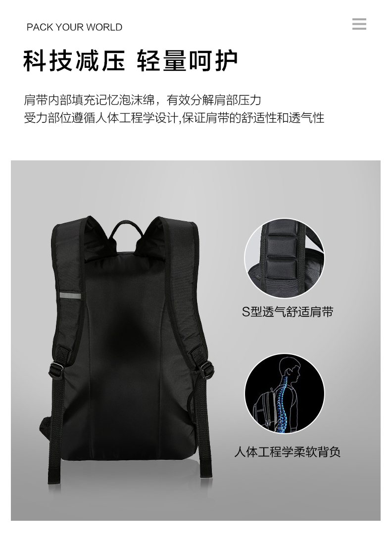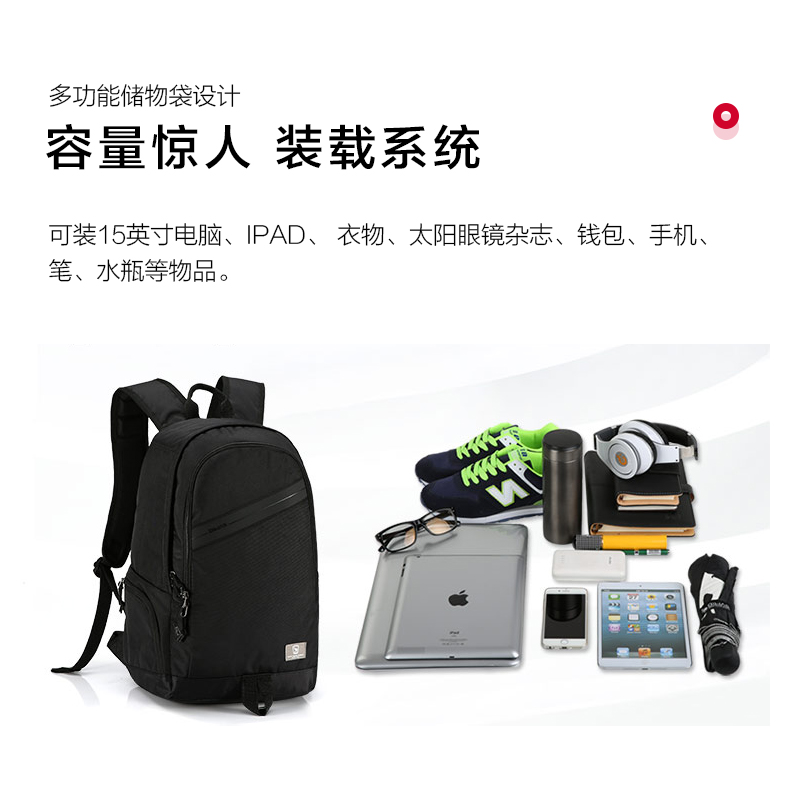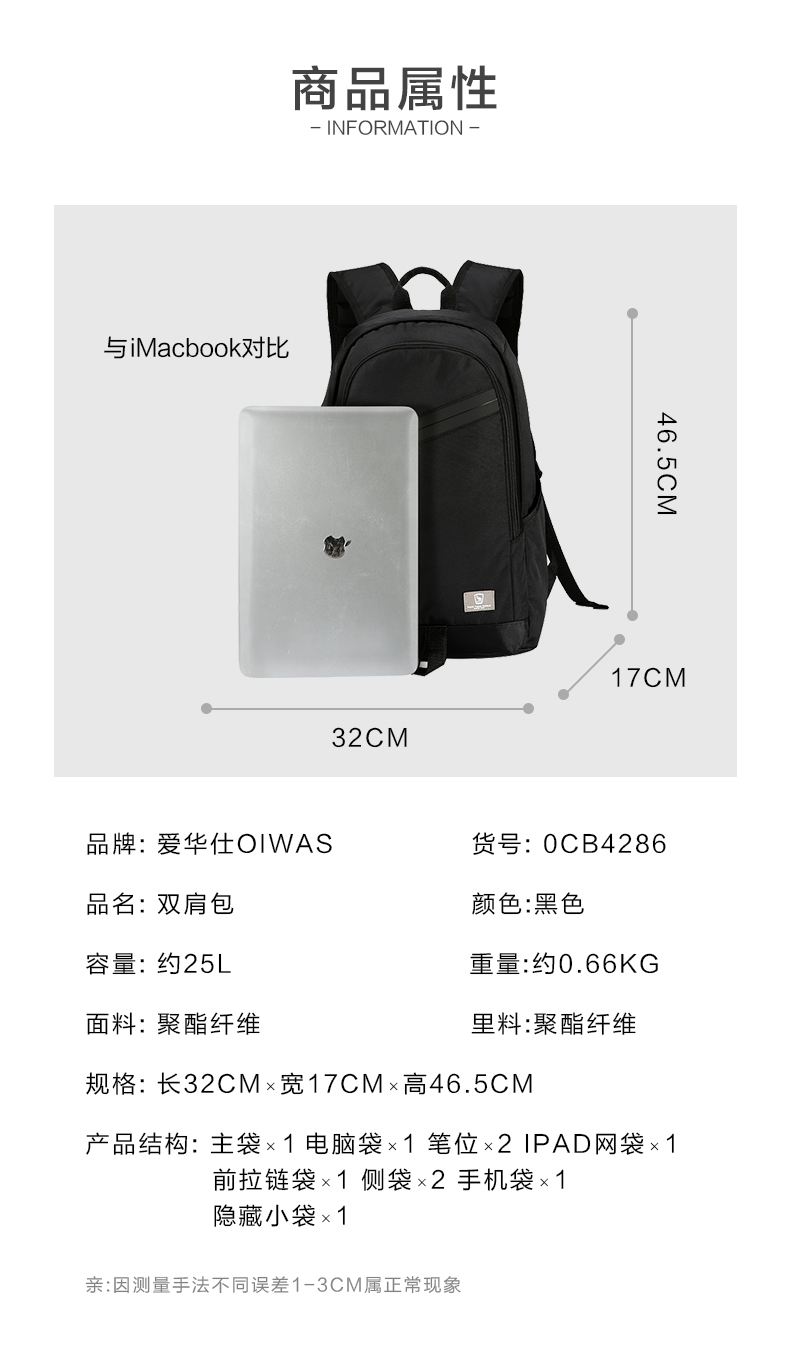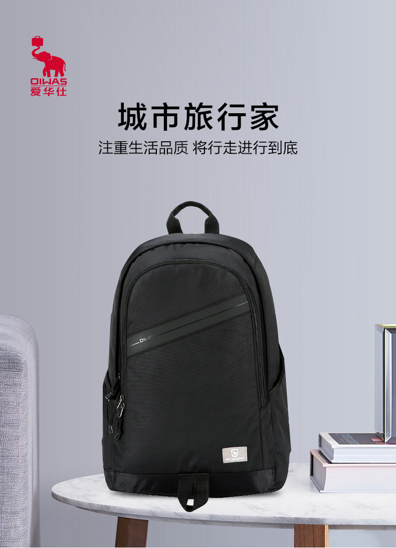 爱华仕(oiwas)休闲双肩包 男背包 时尚韩版学生书包 4286 黑色