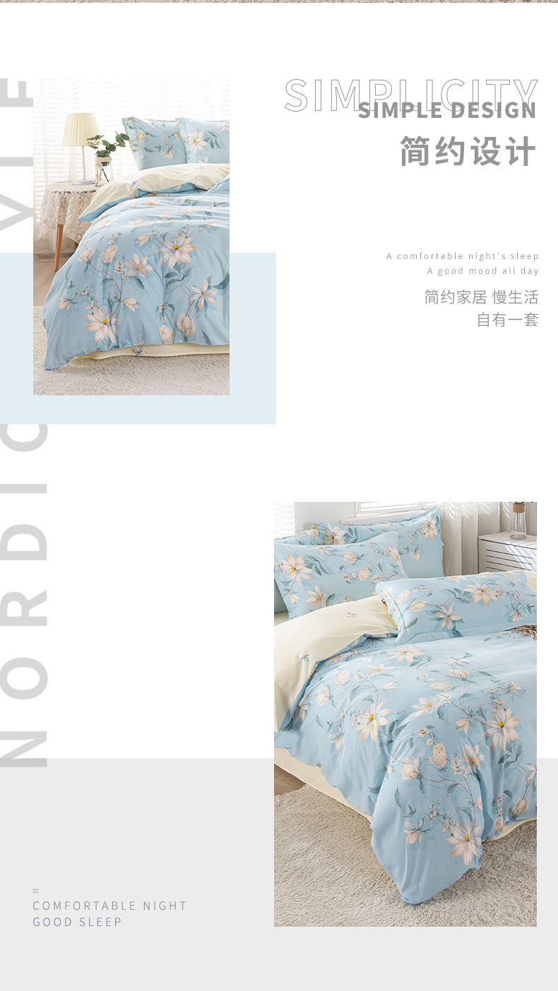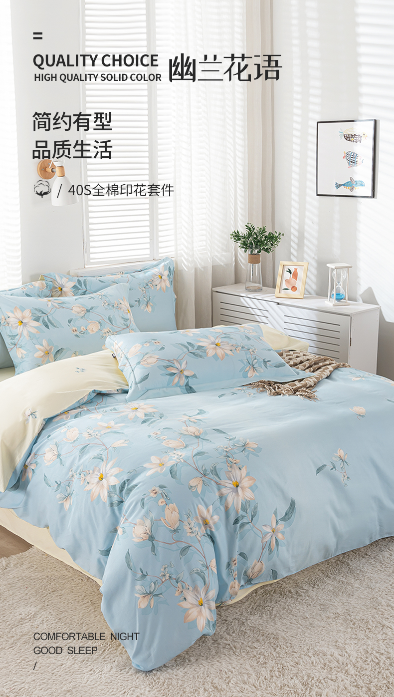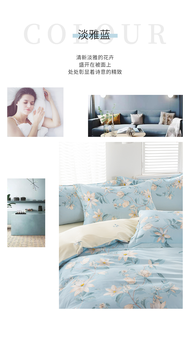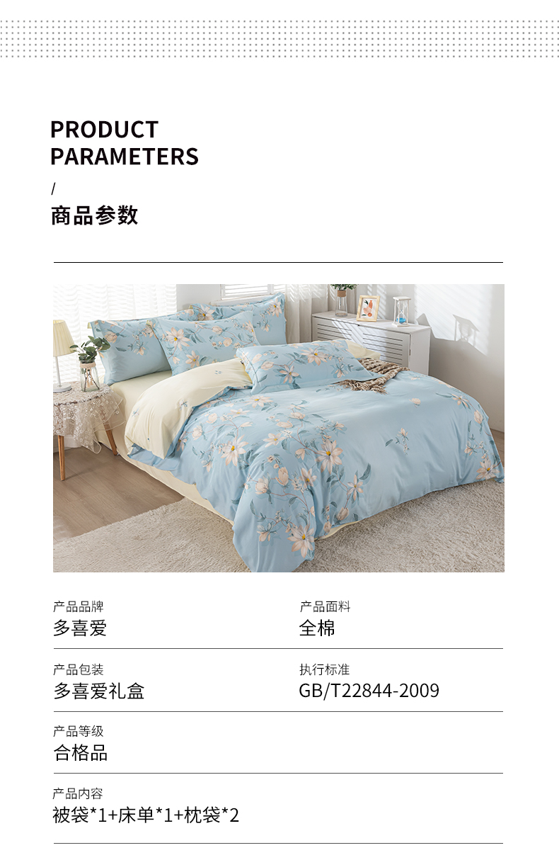 多喜爱-全棉优选四件套 幽兰花语203*229cm 蓝色