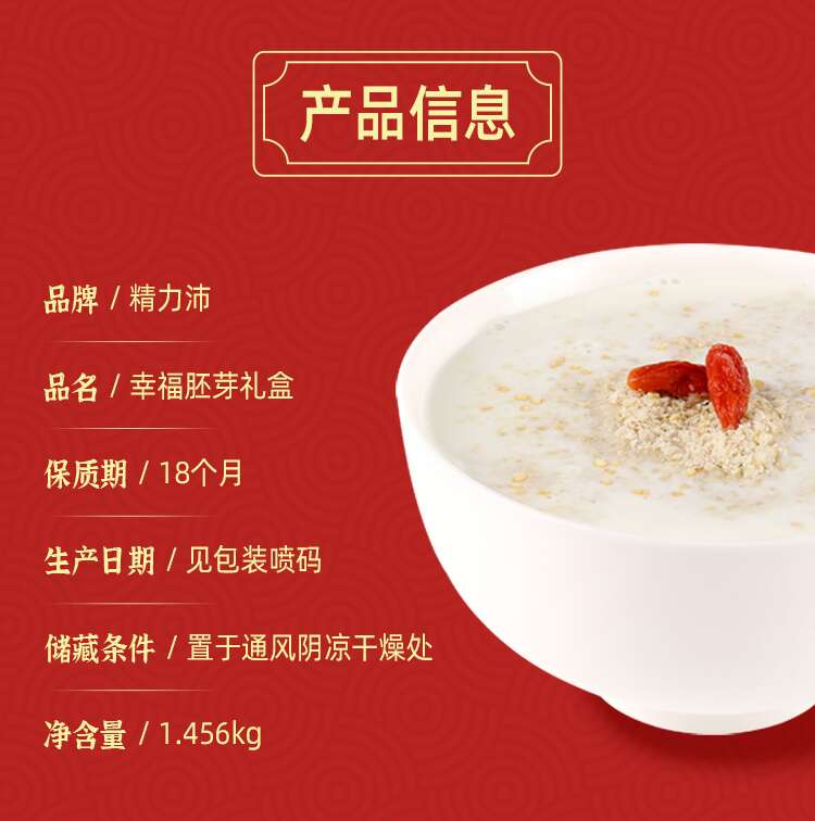 精力沛小麦胚芽高锌富硒营养健康早餐麦片幸福胚芽礼盒1456g 黄色