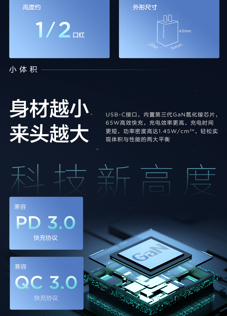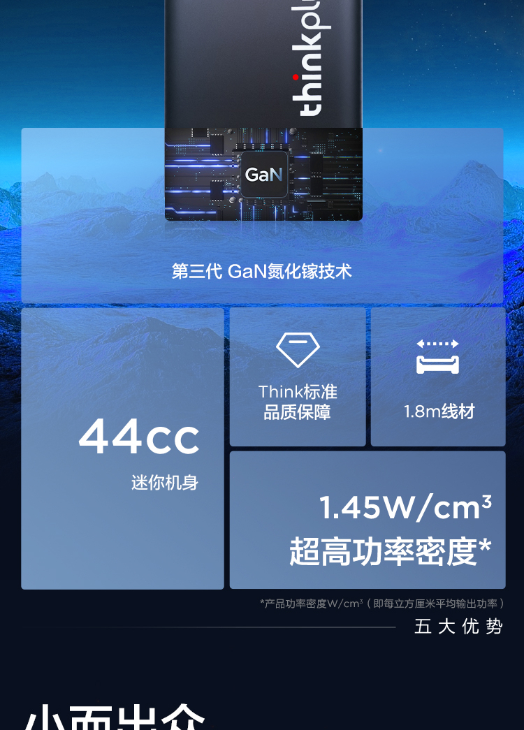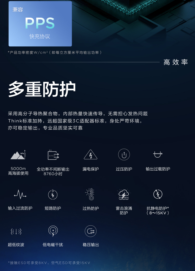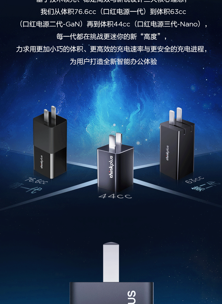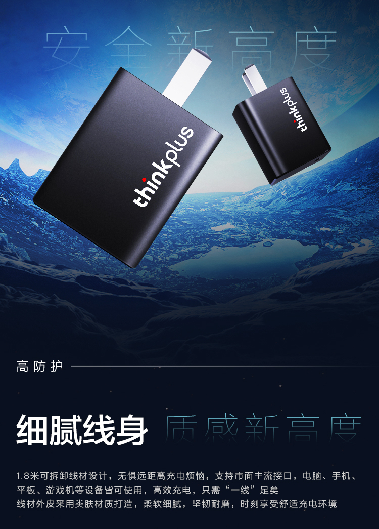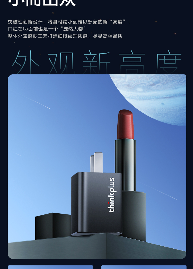 Thinkplus 联想三代口红电源U4X21H24897 Nano 65W(单位:个)黑色适用于:电脑/手机/平板通用便携电源适配器 黑色