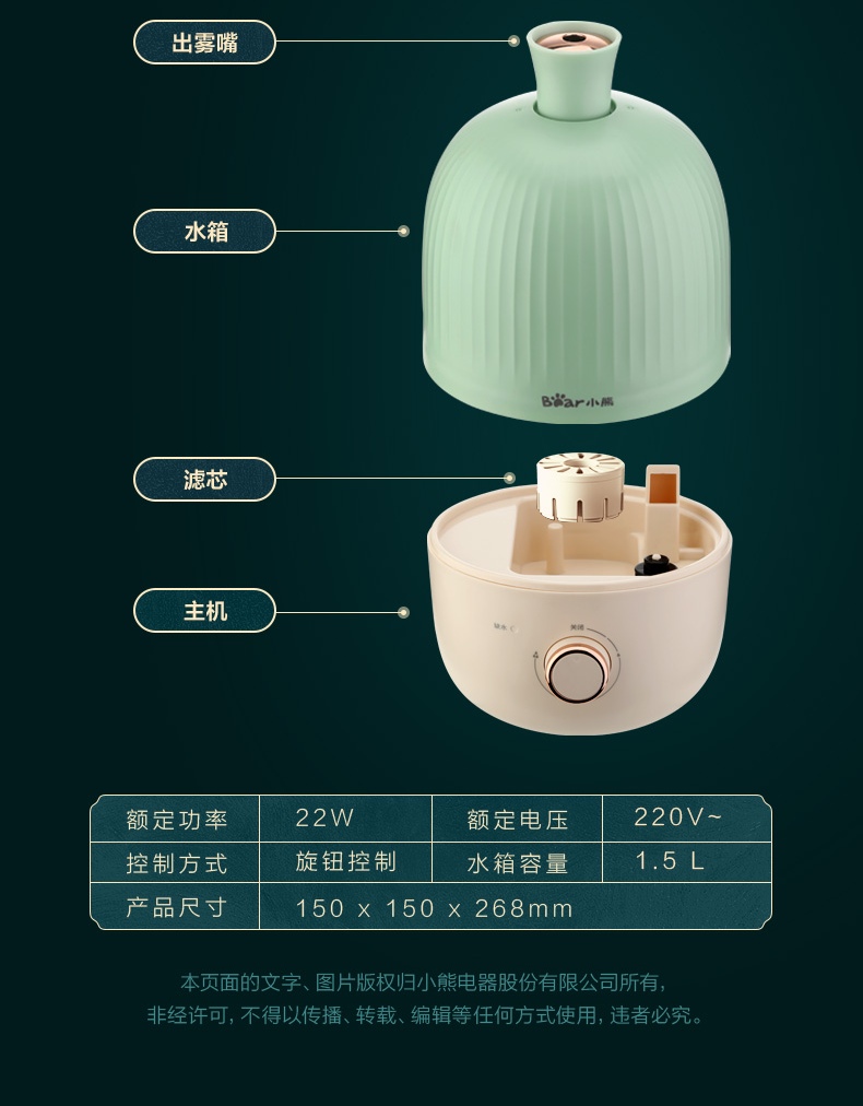 小熊加湿器JSQ-B15K5 台 薄荷绿