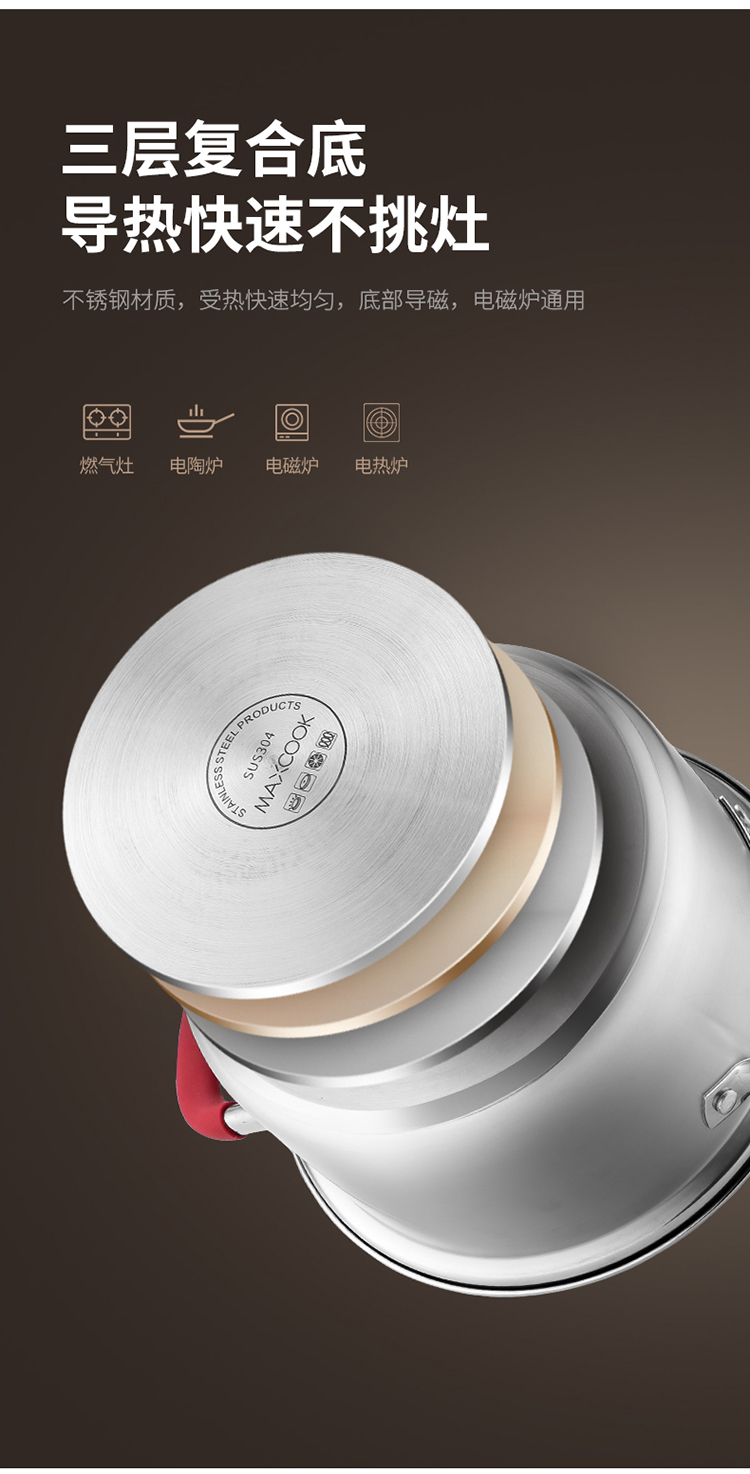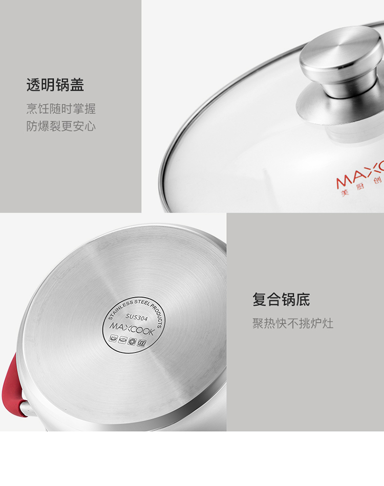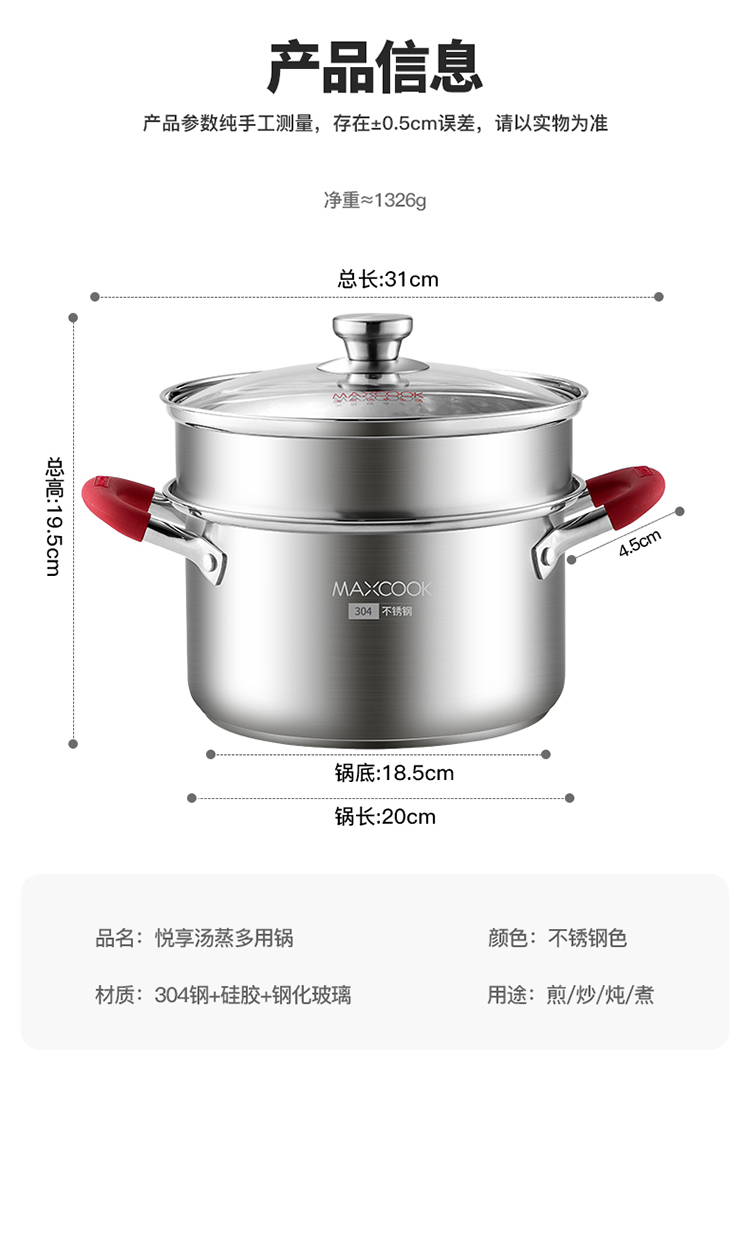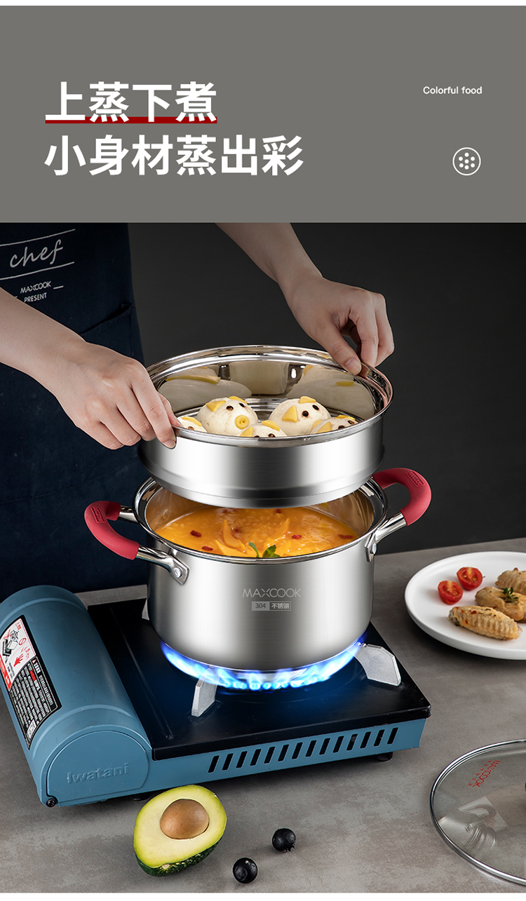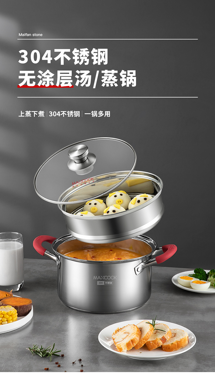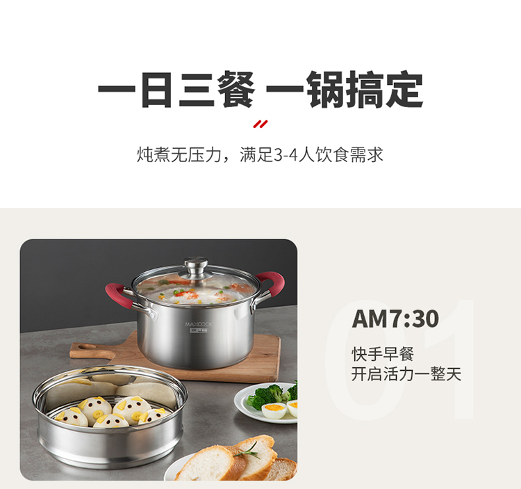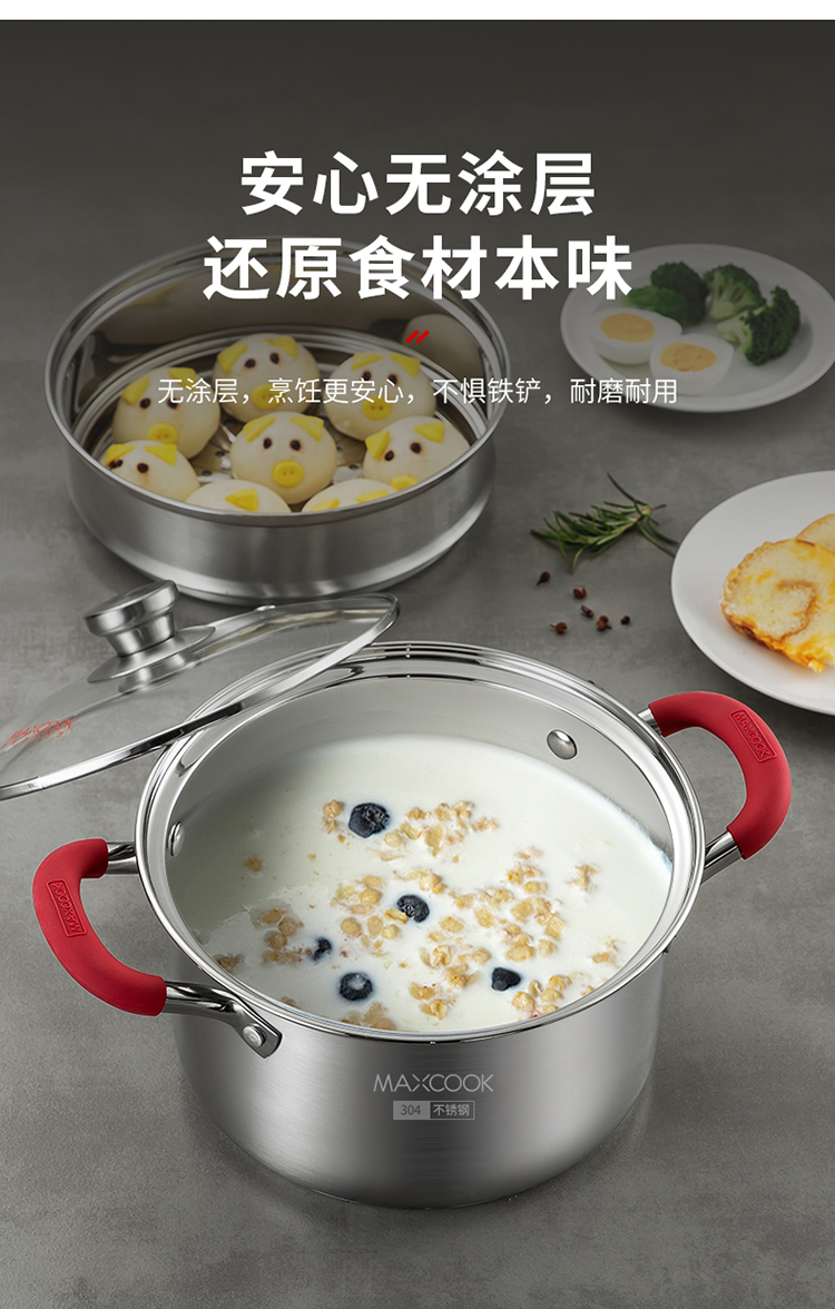 美厨悦享汤蒸多用锅20cm MCLP-602单位:个 不锈钢色