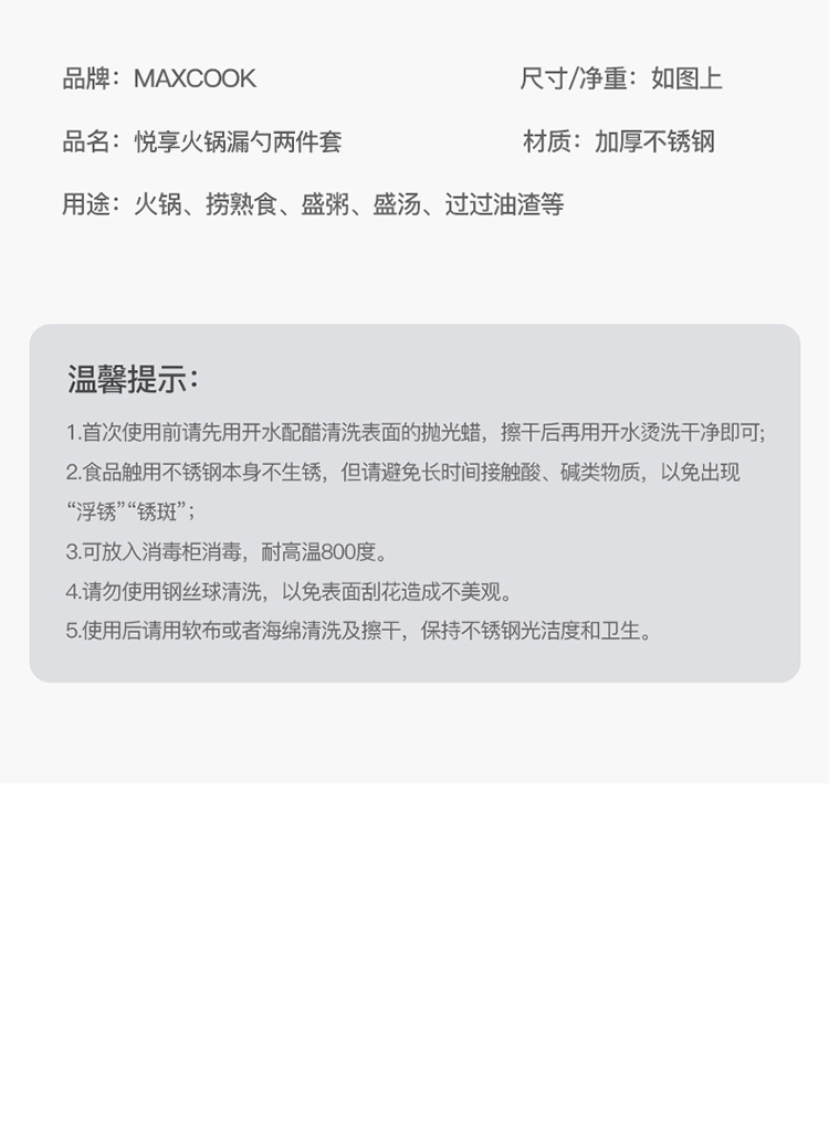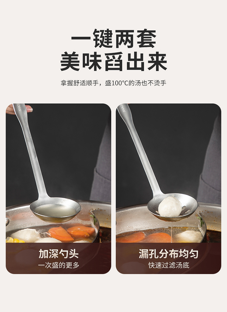 美厨悦享不锈钢火锅勺两件套 MCLP-608(单位:套) 银色