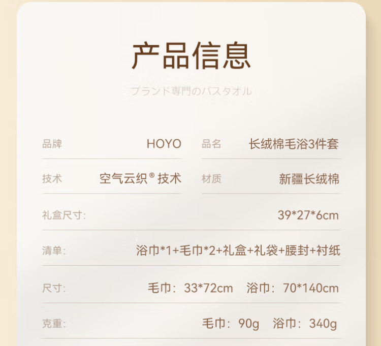 HOYO 长绒棉毛浴3件套 3511 39*27*6cm 浅粉 组合装