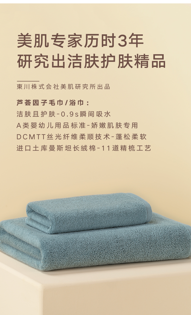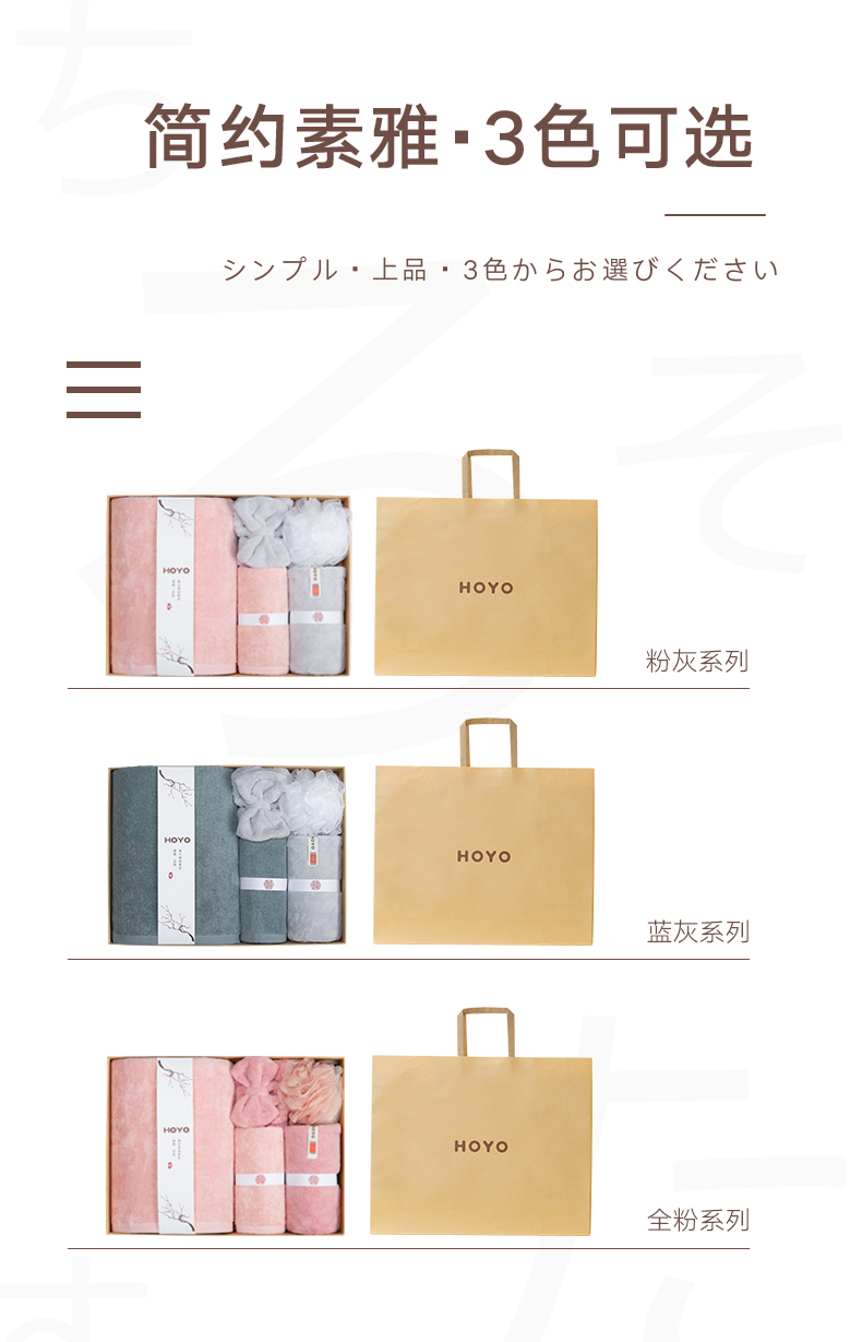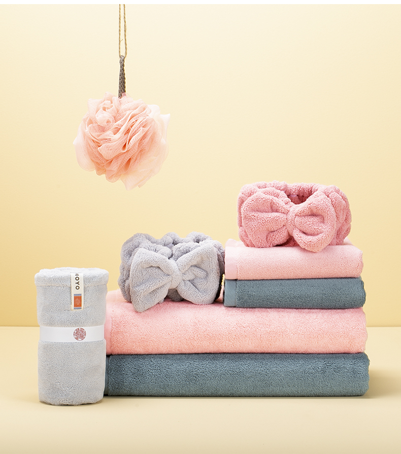 HOYO 纯棉a类毛浴巾干发帽束发带浴花洗漱5件套 JP8058 蓝灰