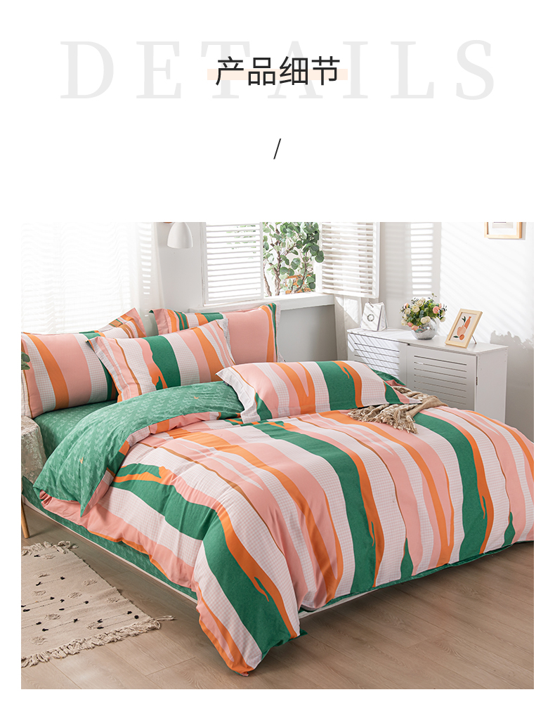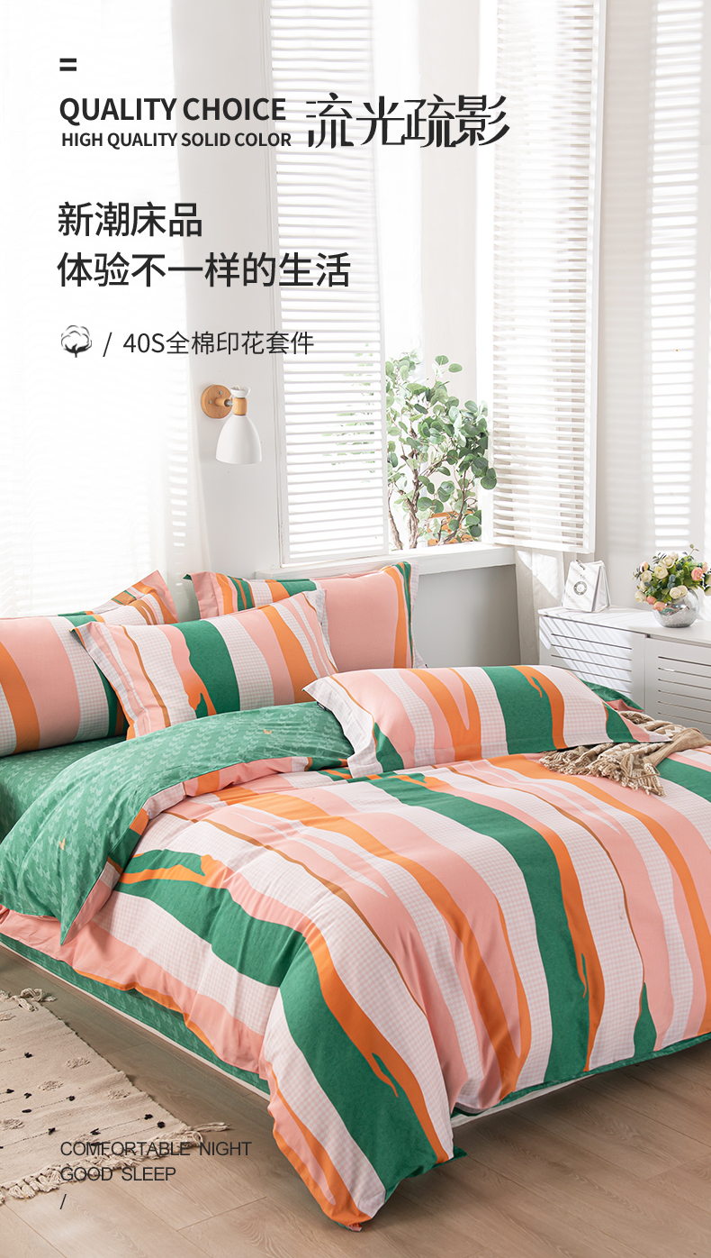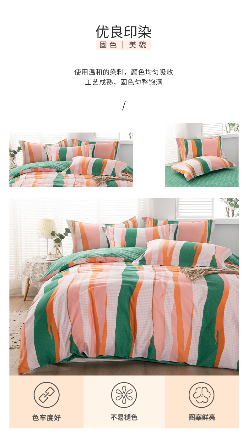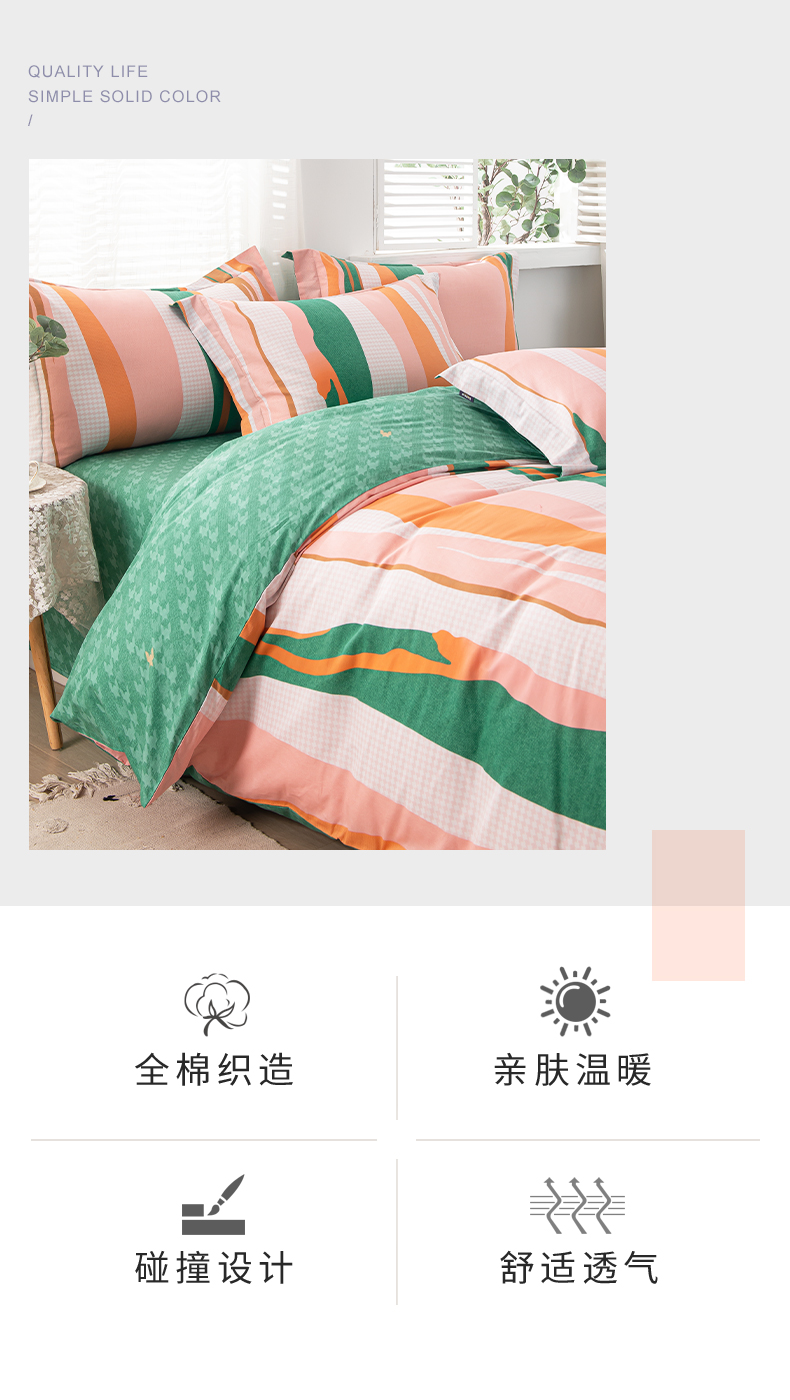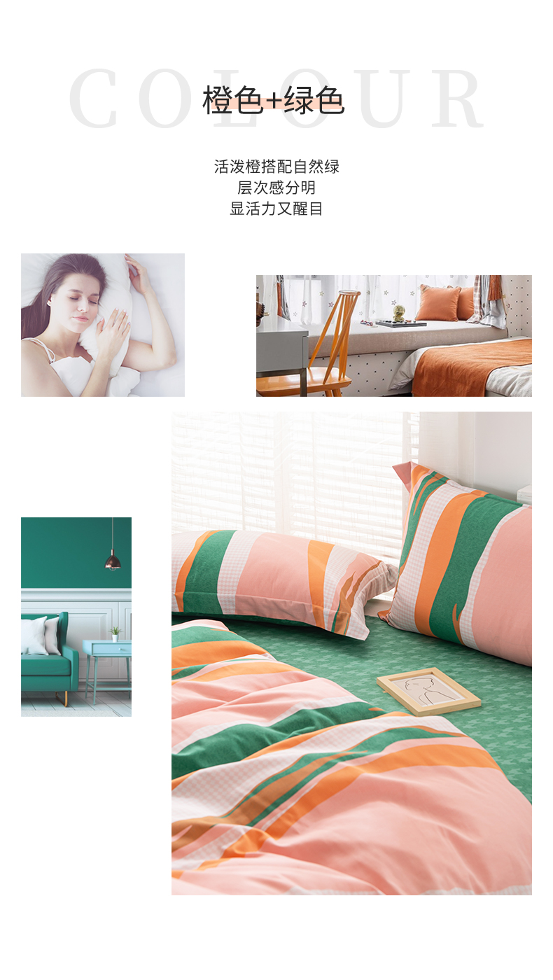 多喜爱-全棉优选四件套 流光疏影203*229cm 橙子+绿色