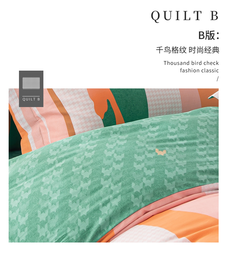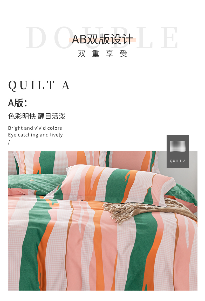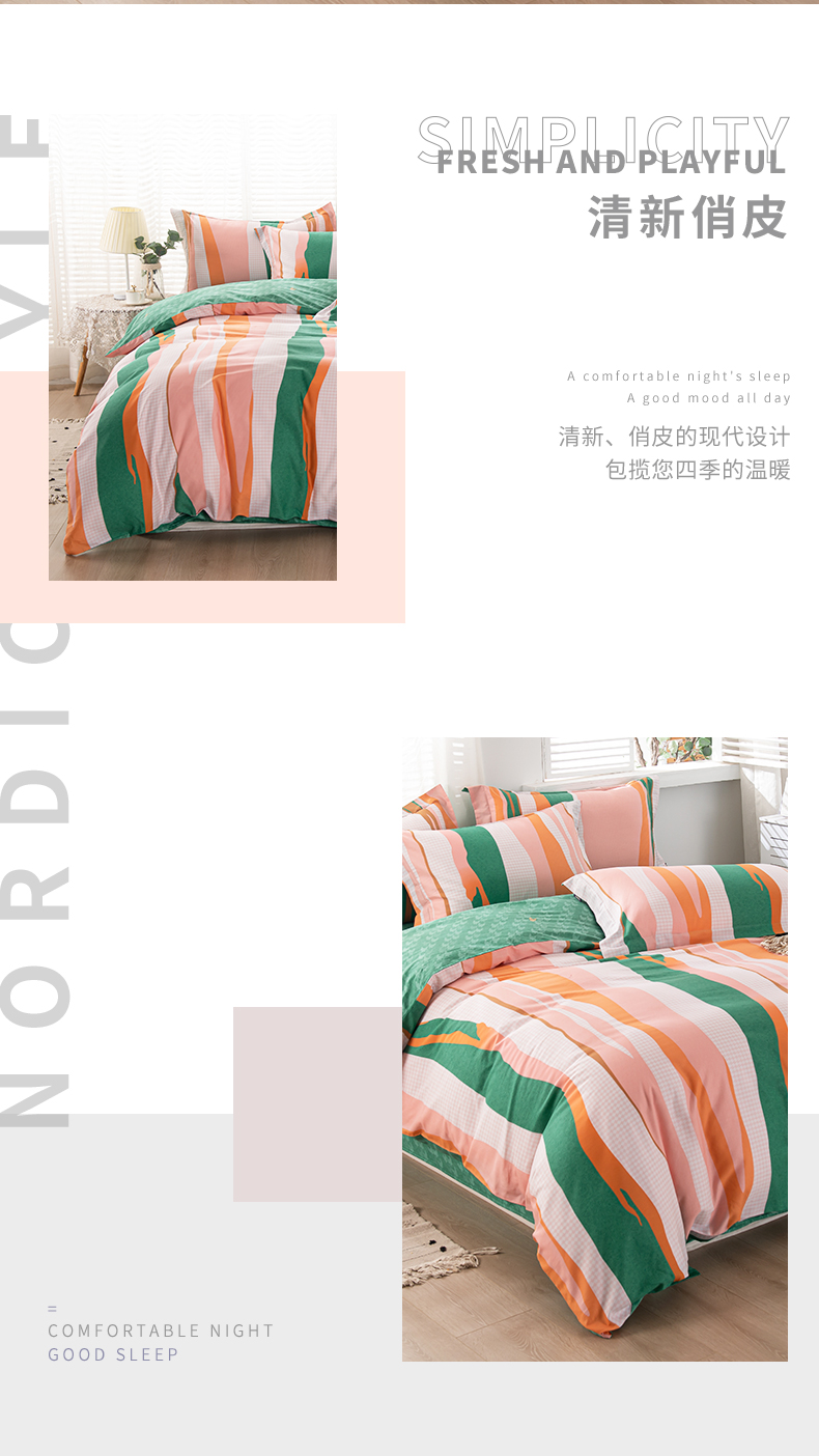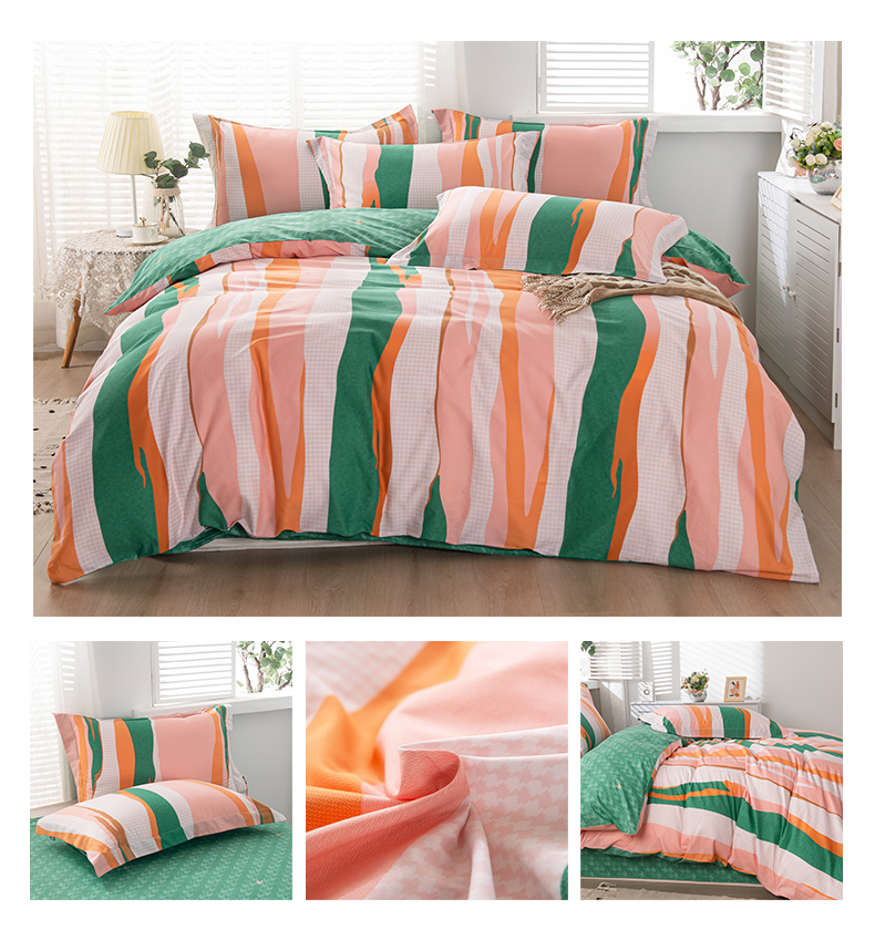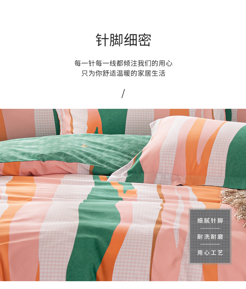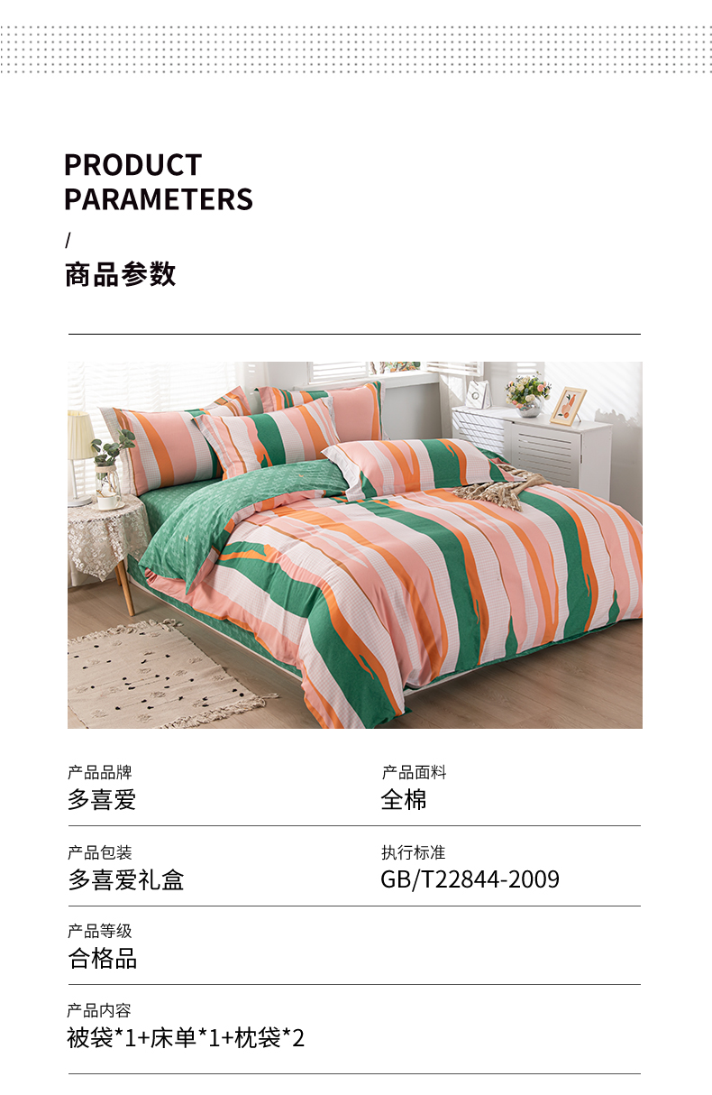 多喜爱-全棉优选四件套 流光疏影203*229cm 橙子+绿色