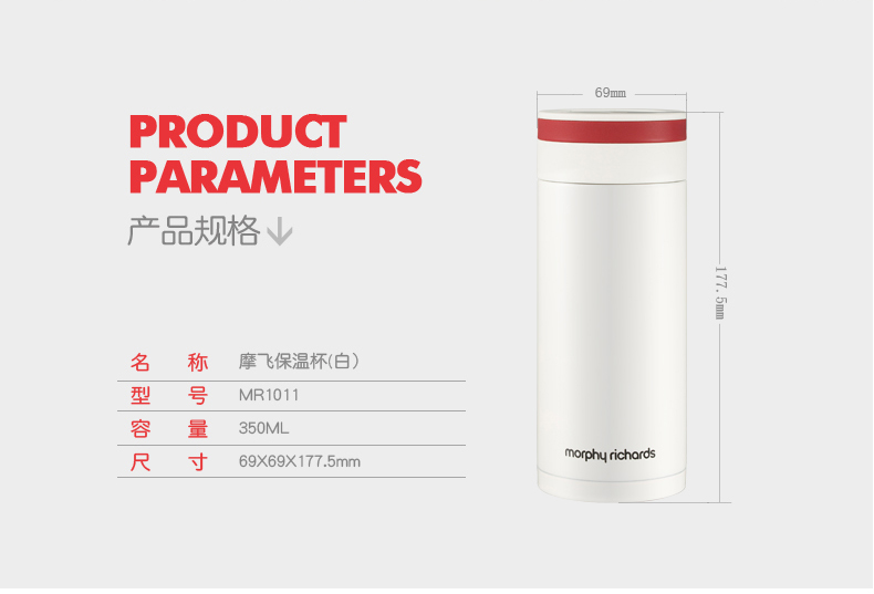 摩飞 保温杯MR1011 350ML(单位:个) 白色