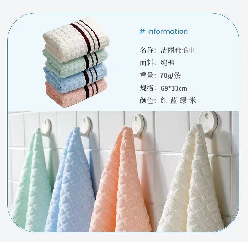 洁丽雅纯棉素色方格毛巾2条7485(2条)69*33cm 毛巾*2