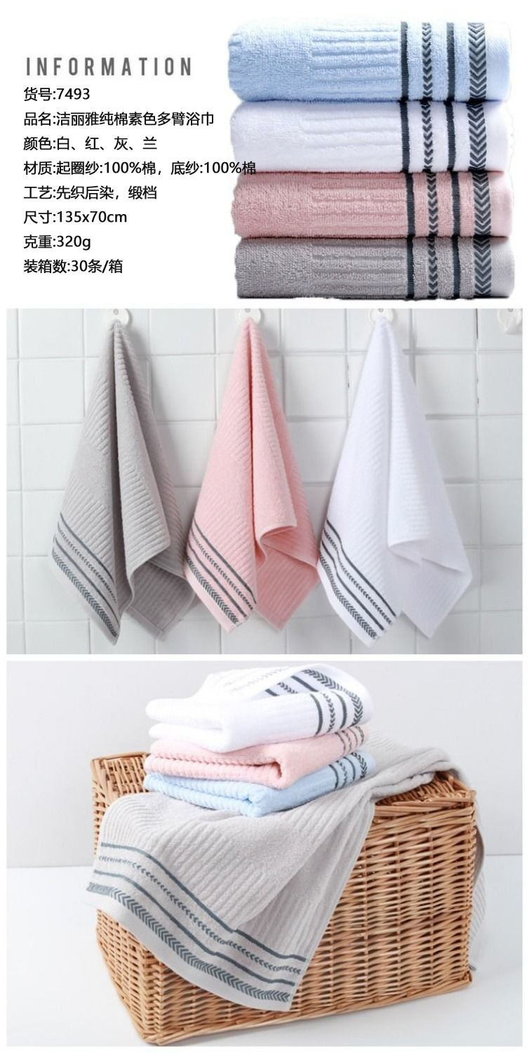 洁丽雅纯棉素色多臂浴巾1条7493(1条)135*70cm 浴巾*1(混色)