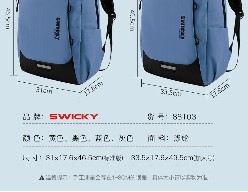 SWICKY 休闲学生双肩包88103(单位:个) 宝石蓝