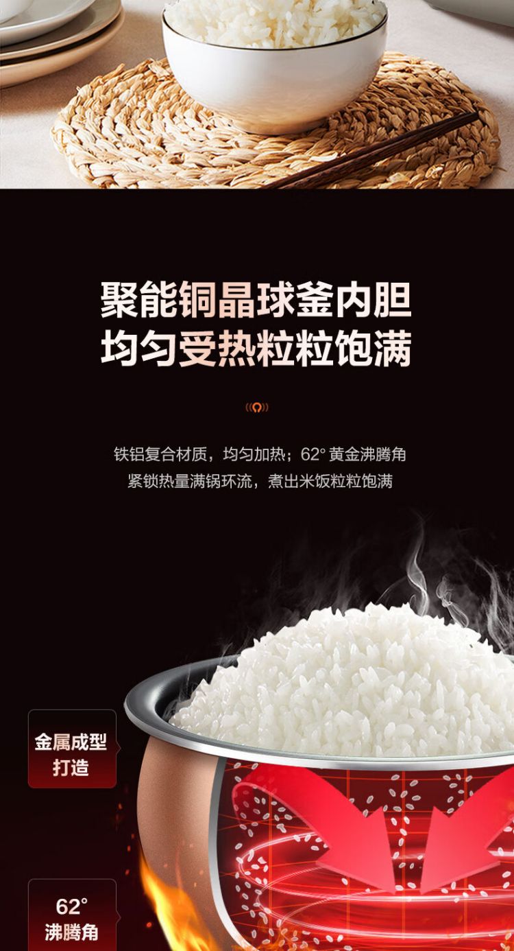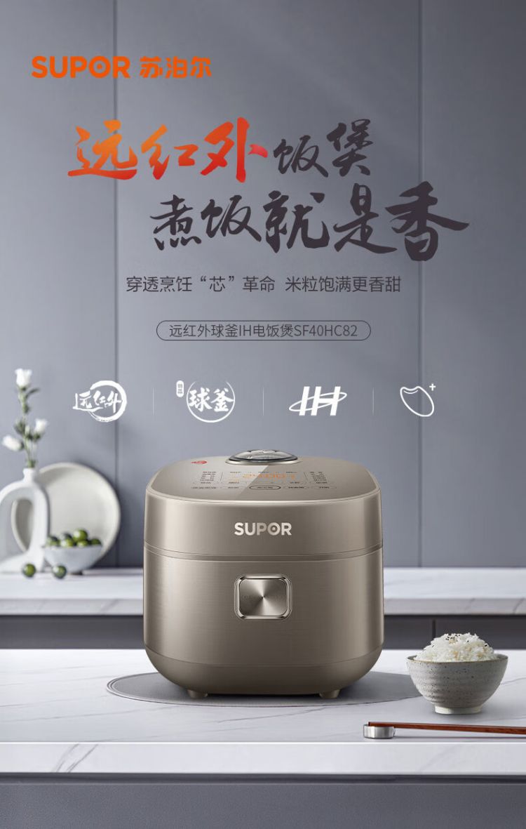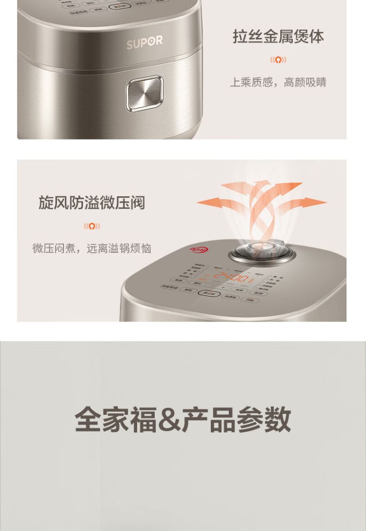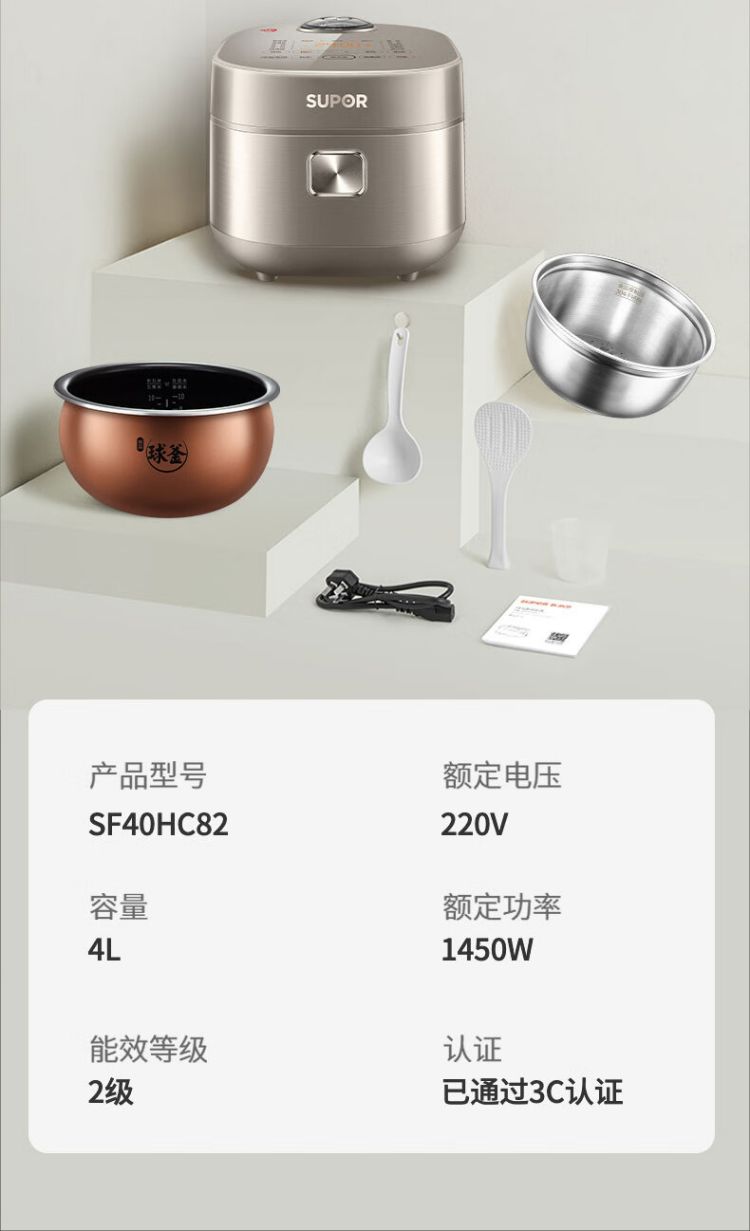 苏泊尔(SUPOR) 电饭煲电饭锅IH电磁加热智能预约4L家用SF40HC82(单位:台) 金色