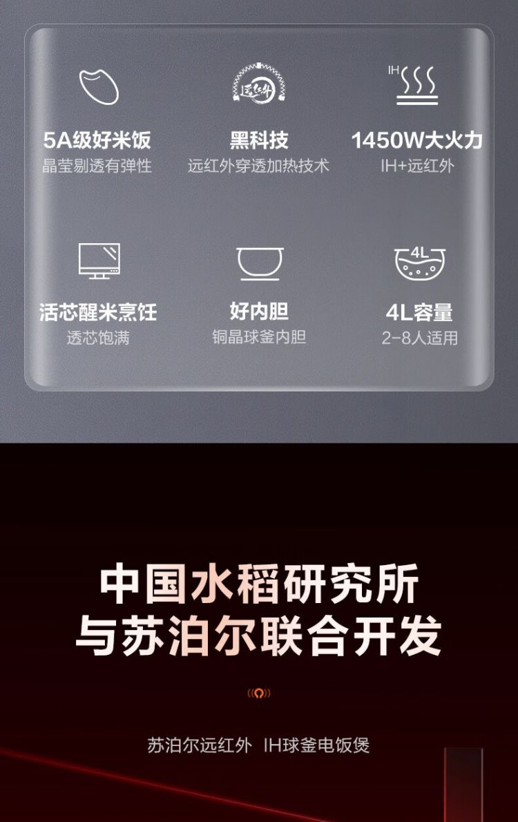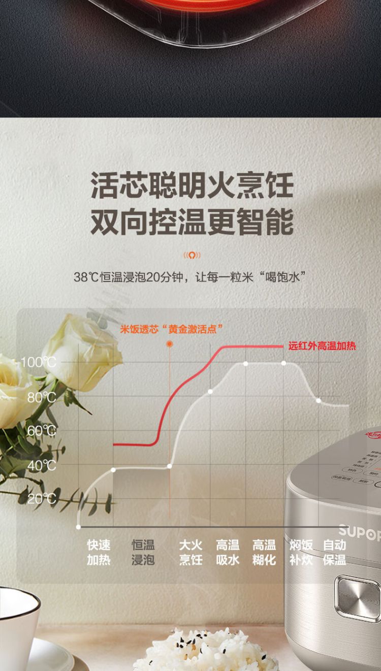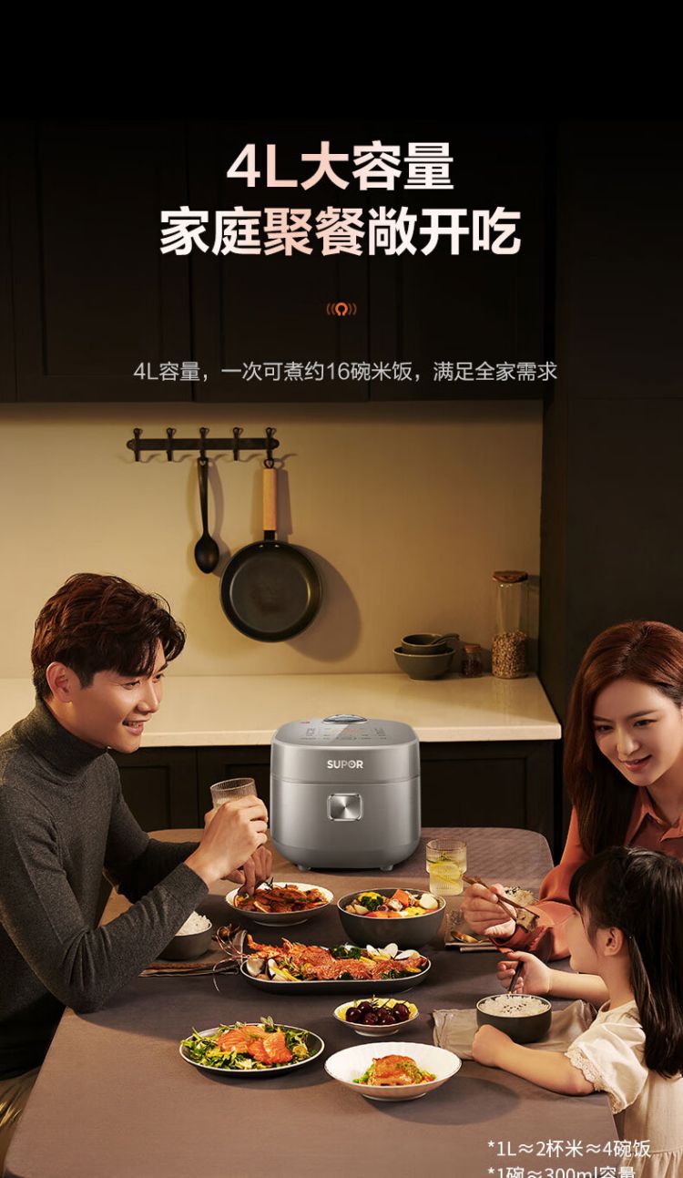 苏泊尔(SUPOR) 电饭煲电饭锅IH电磁加热智能预约4L家用SF40HC82(单位:台) 金色