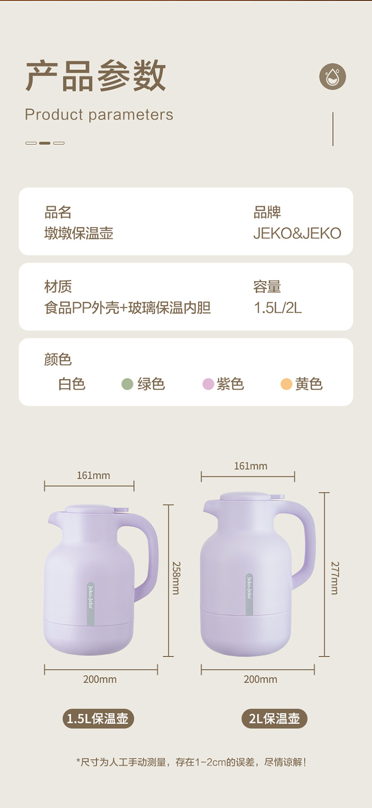捷扣捷扣(JEKO&JEKO) 大容量暖水壶 2L 保温壶 紫色(单位:个)