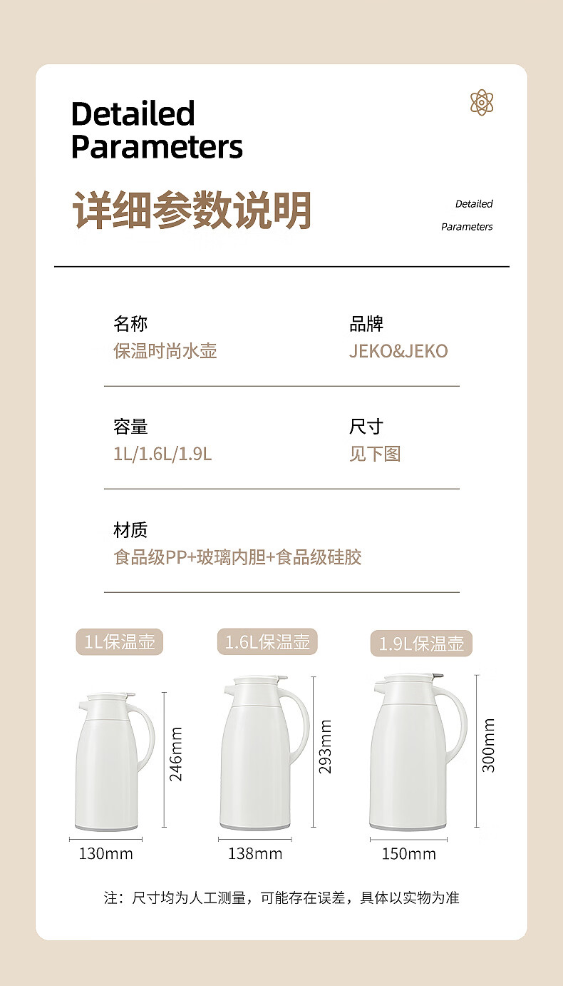 JEKO&JEKO 1.6L时尚保温壶SWH-1604(单位:个) 白色