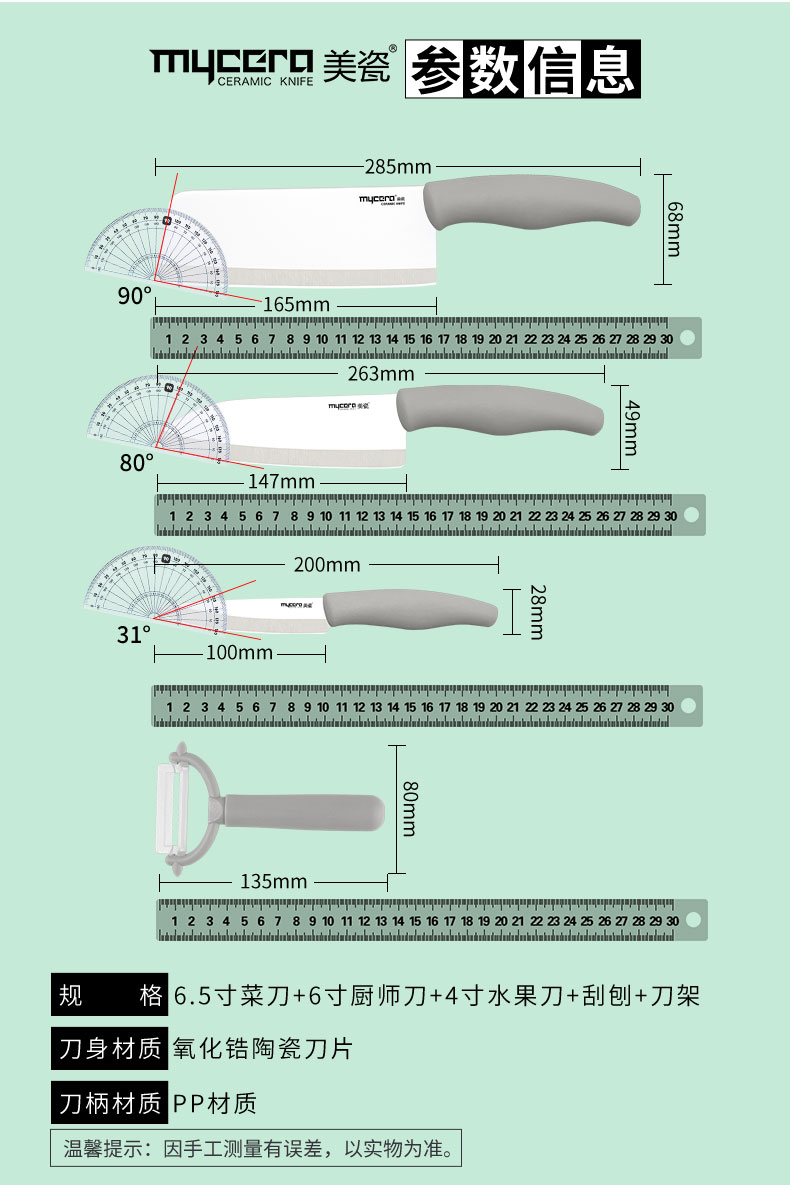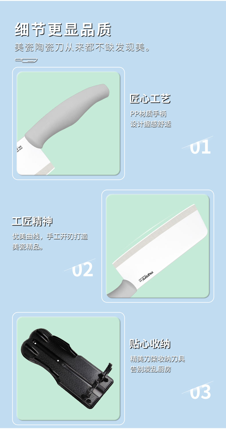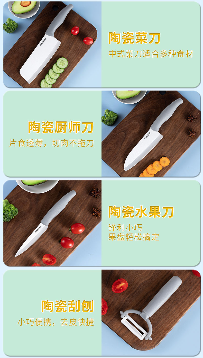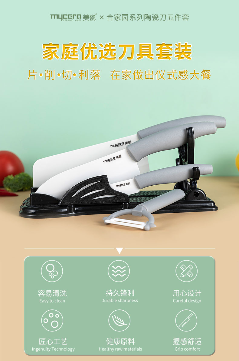美瓷 (mycera) 陶瓷刀合家圆系列厨房刀具五件套 刀具套装 THJY02H (单位:套) 灰色