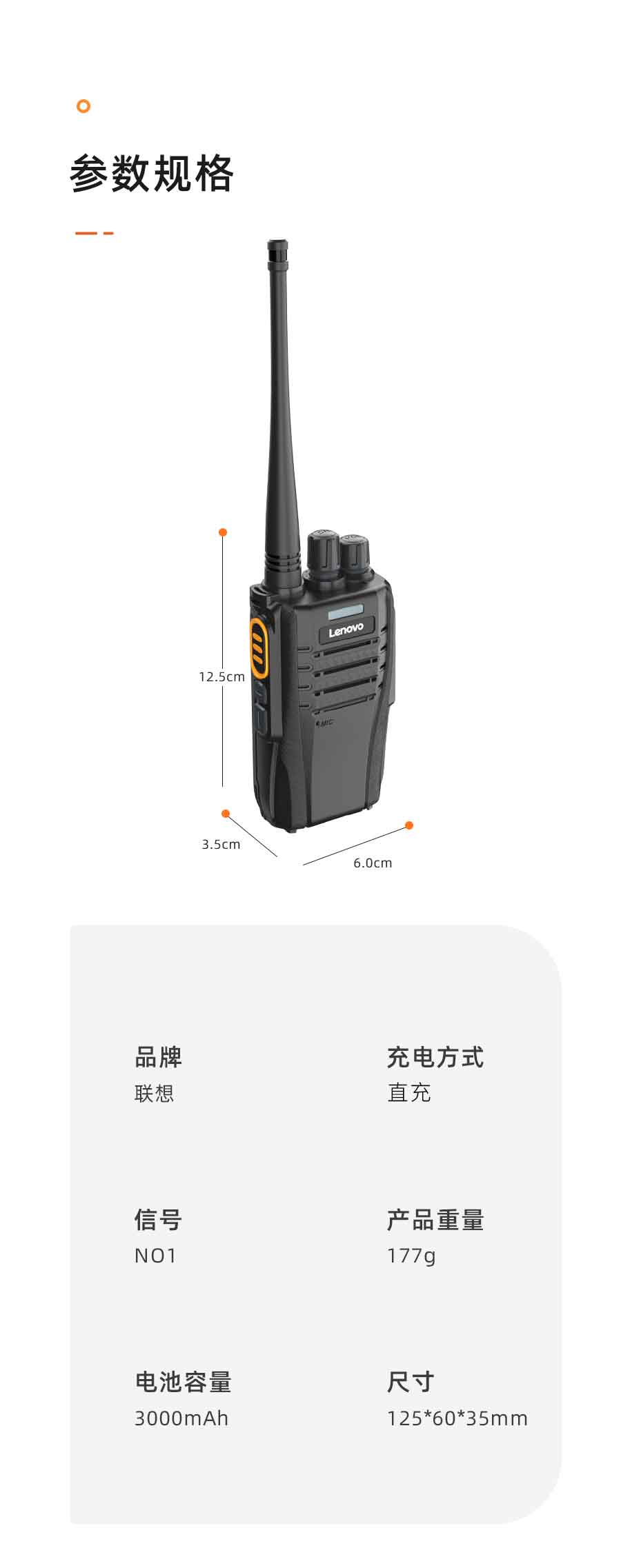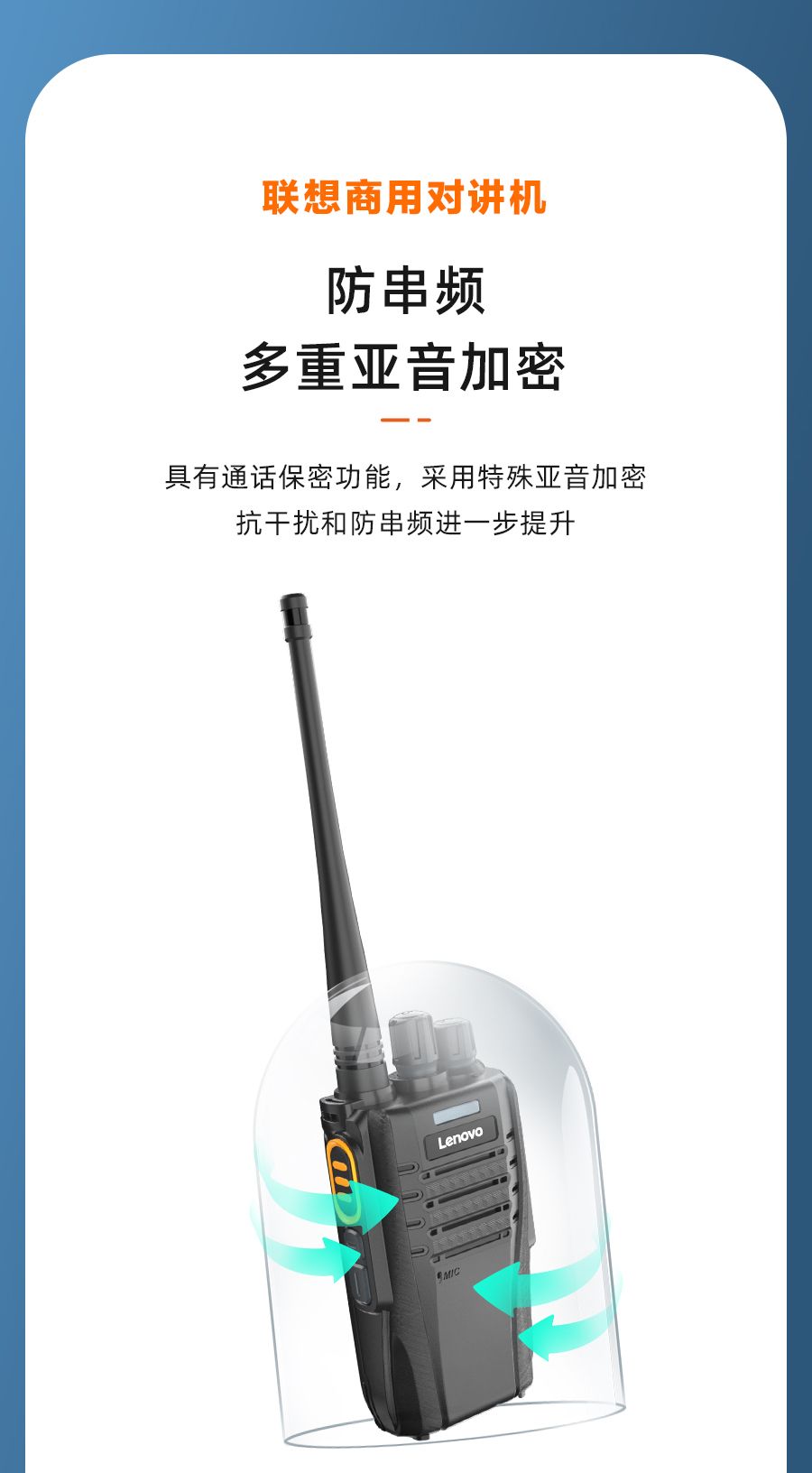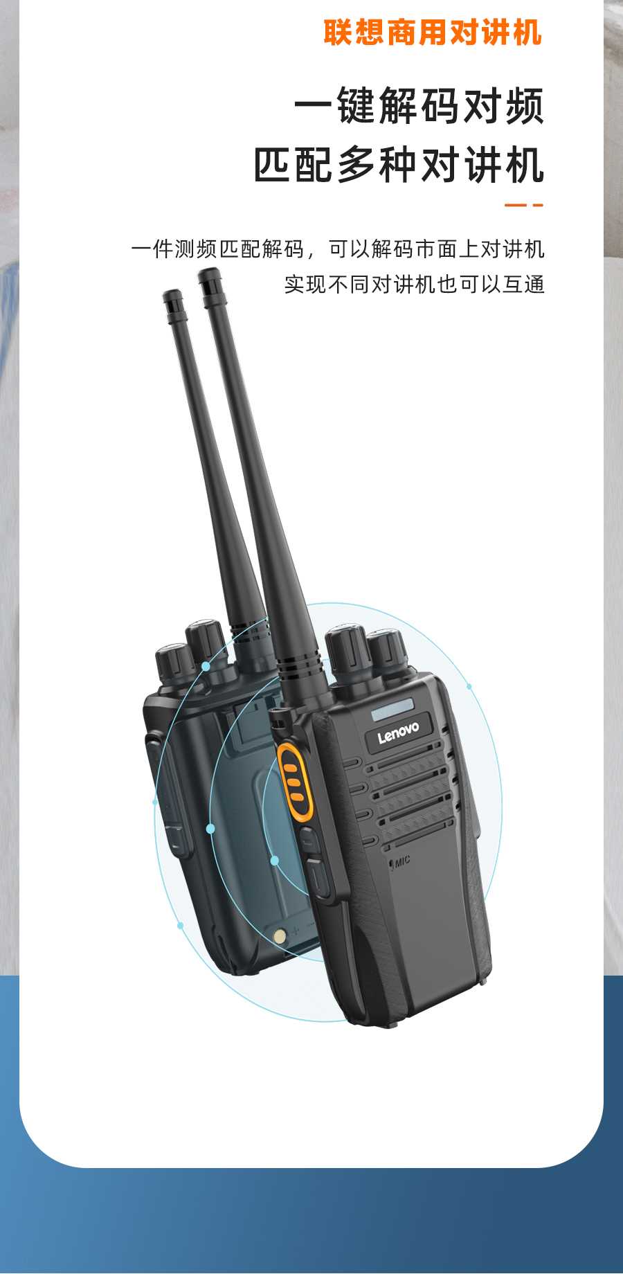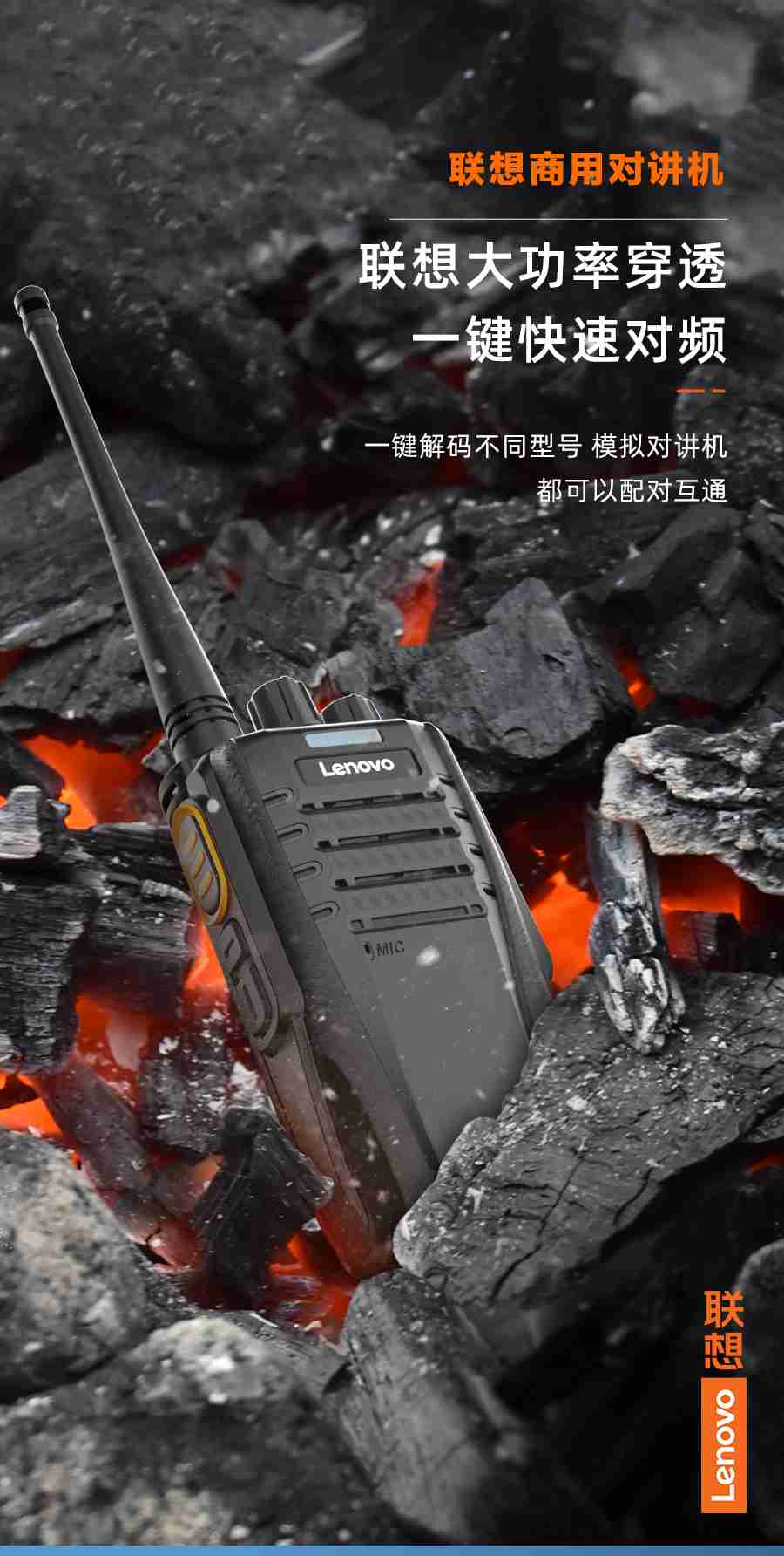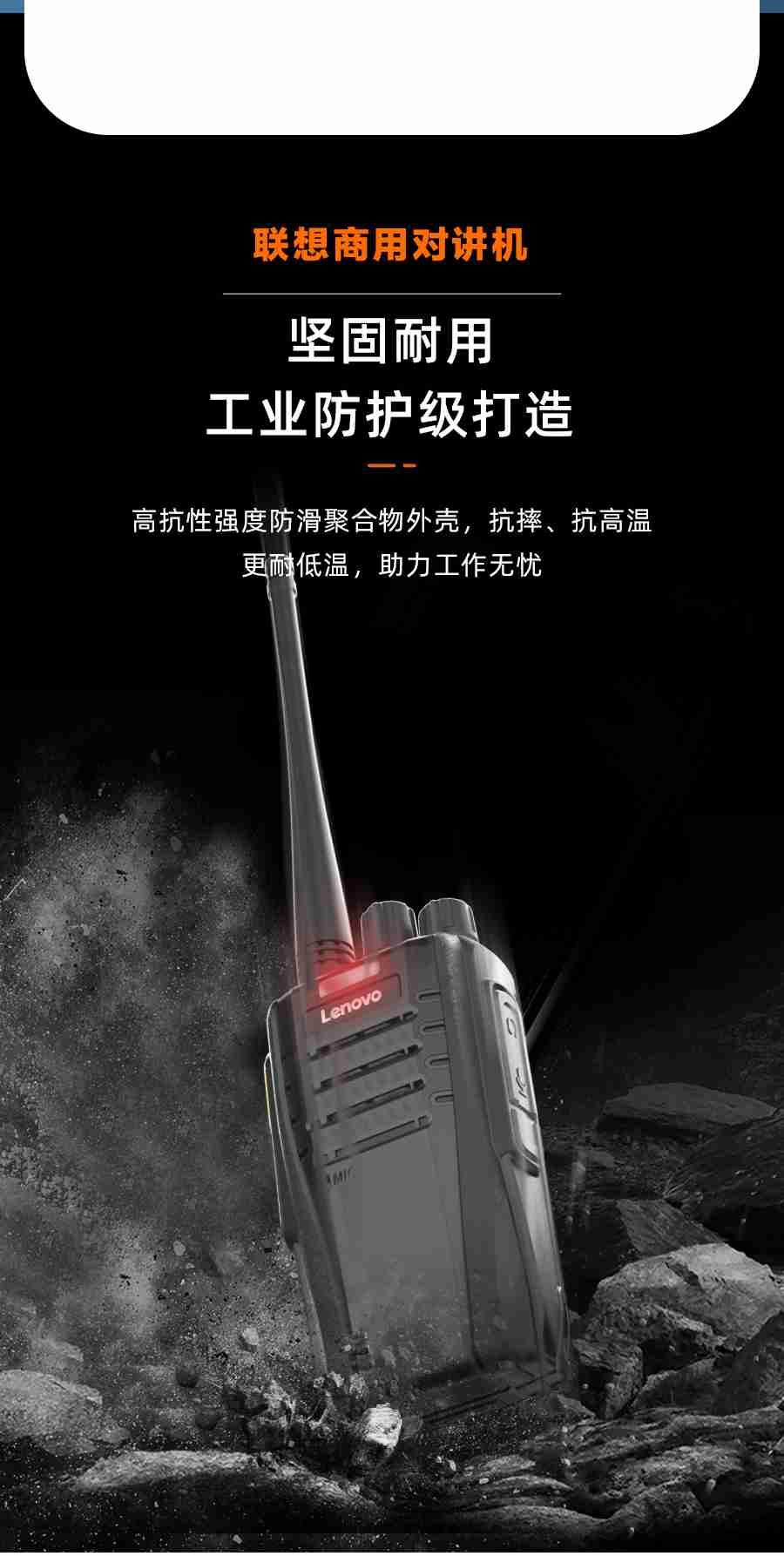 联想(Lenovo) N01对讲机无线复制 一键对频 远距离户外手台商用酒店办公自驾游长待机民用工地适用单台装 曜石黑