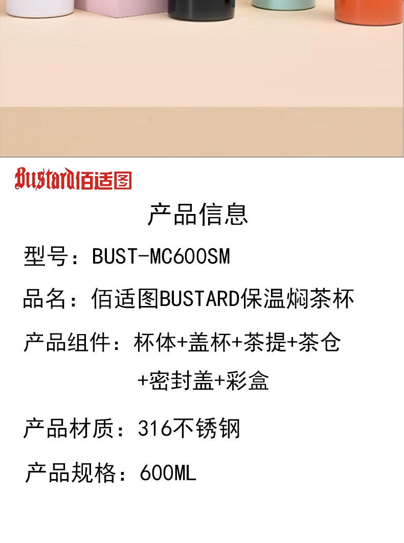 佰适图Bustard 保温焖茶杯 BUST-MC600SM 随机