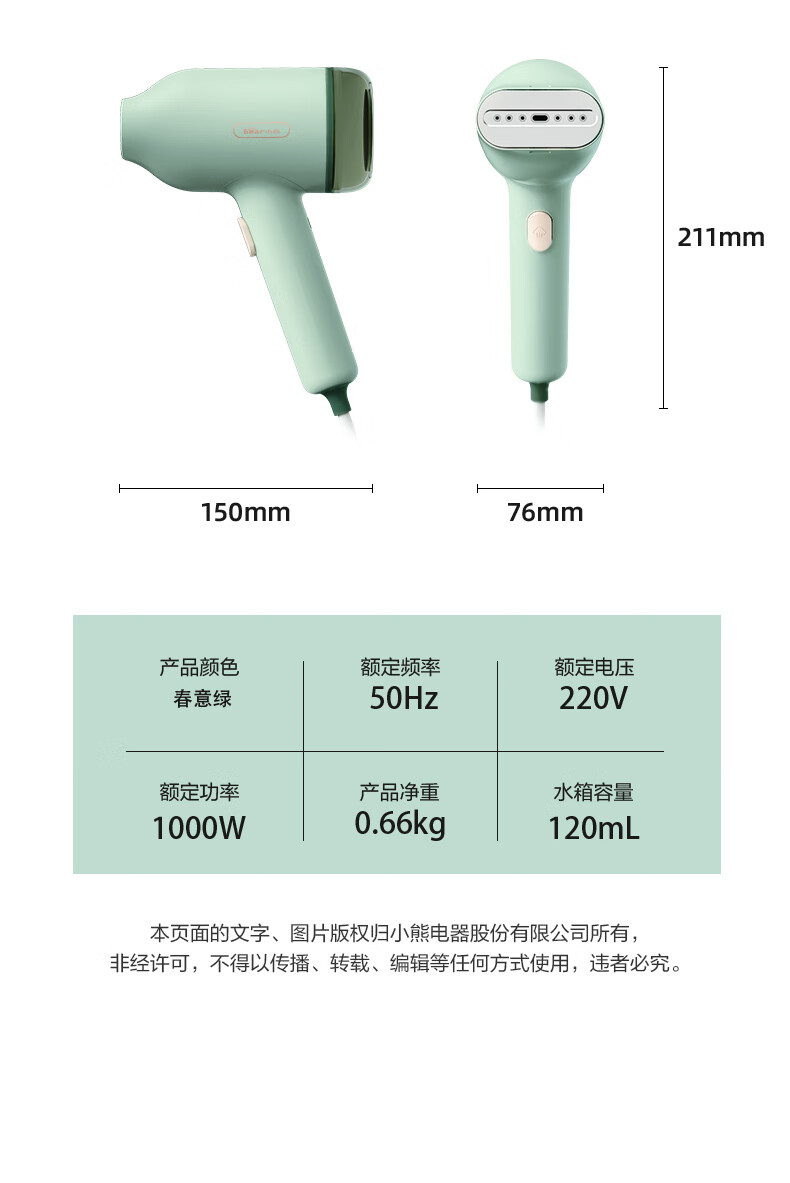 小熊(Bear)手持式挂烫机 GTJ-B10S7 台 绿色