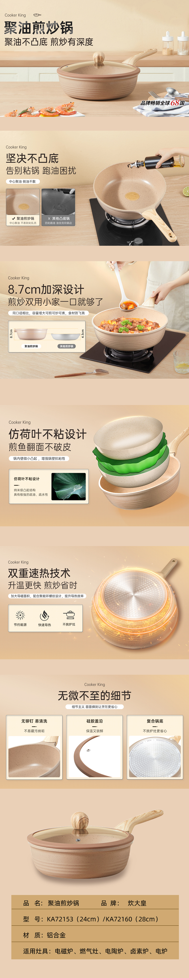 炊大皇聚油煎炒锅28cmKA72160(单位:个) 拿铁色