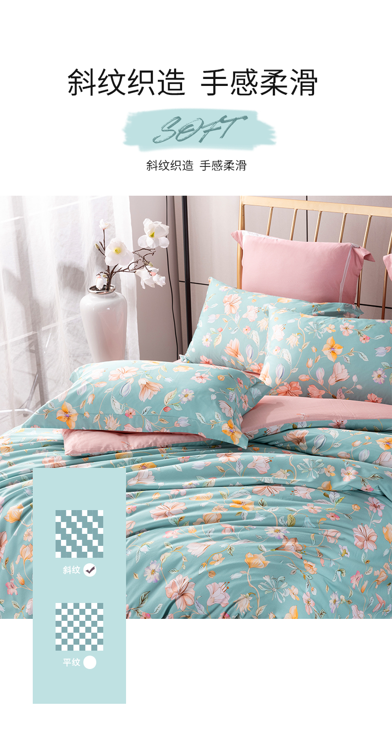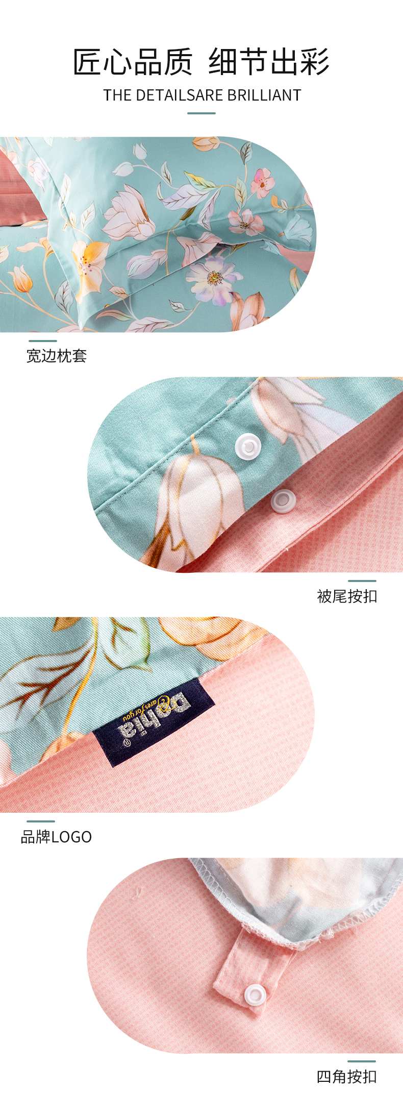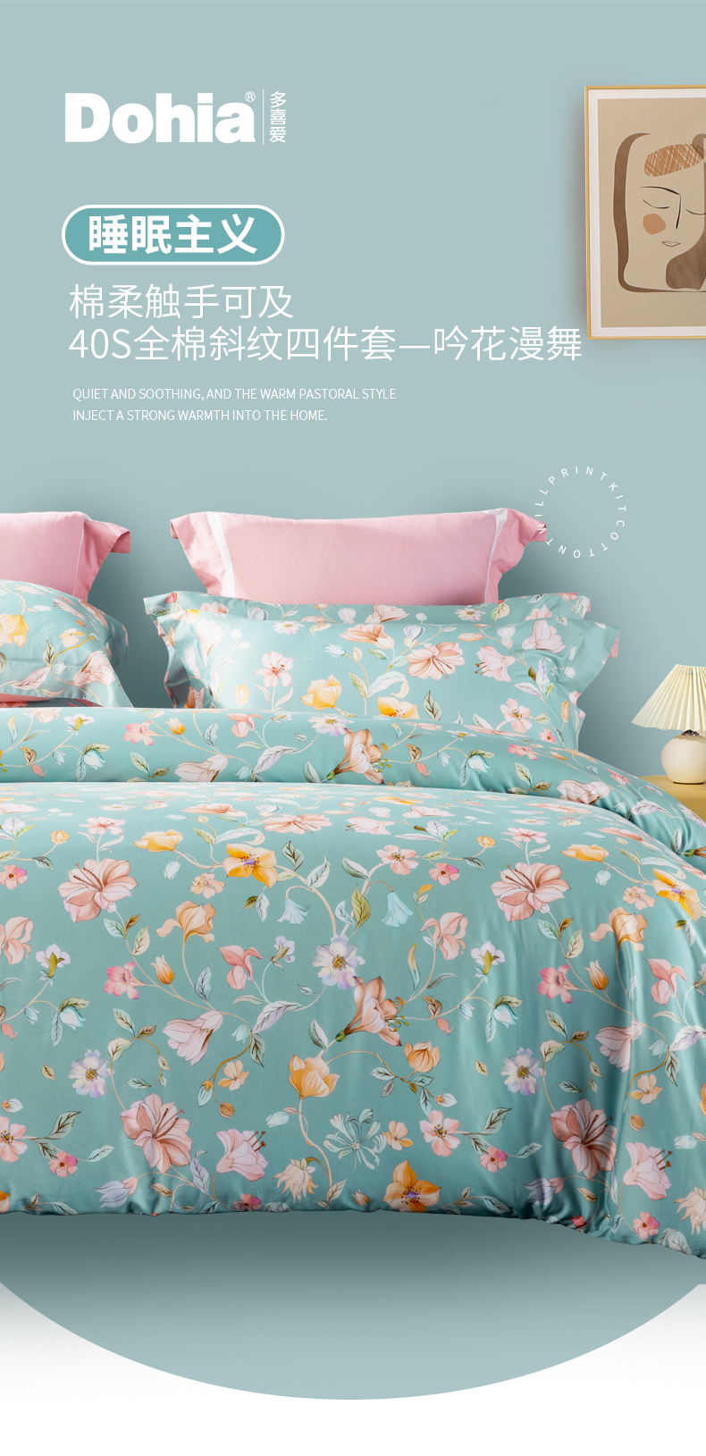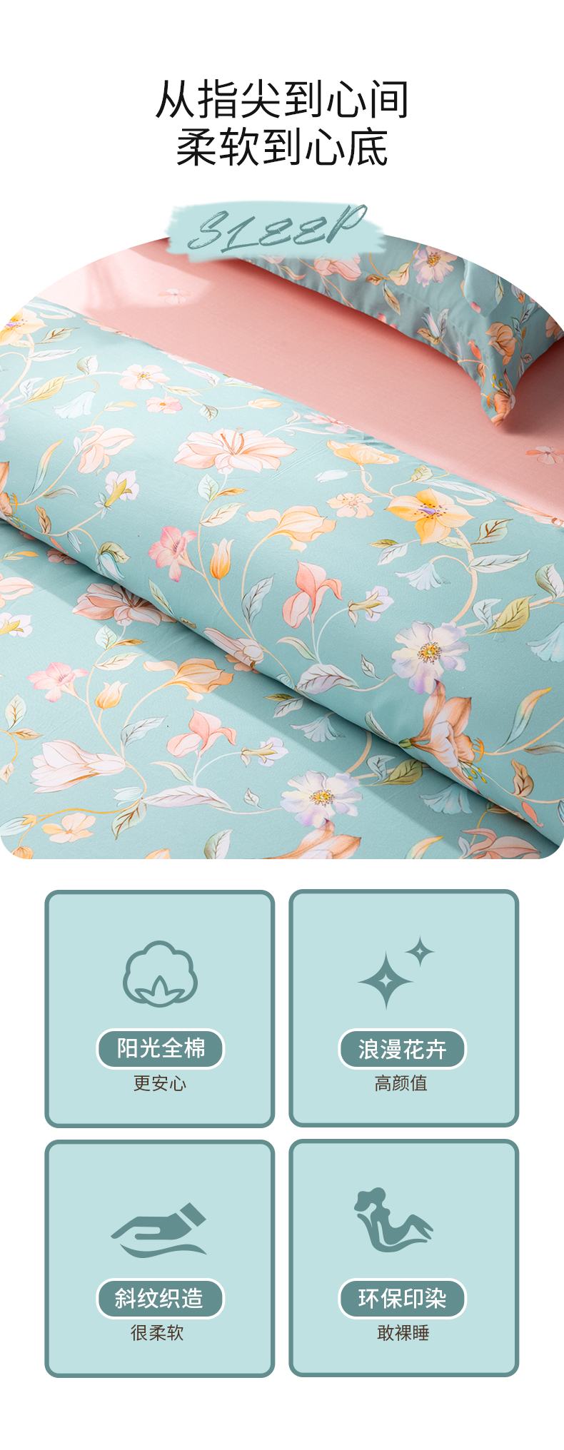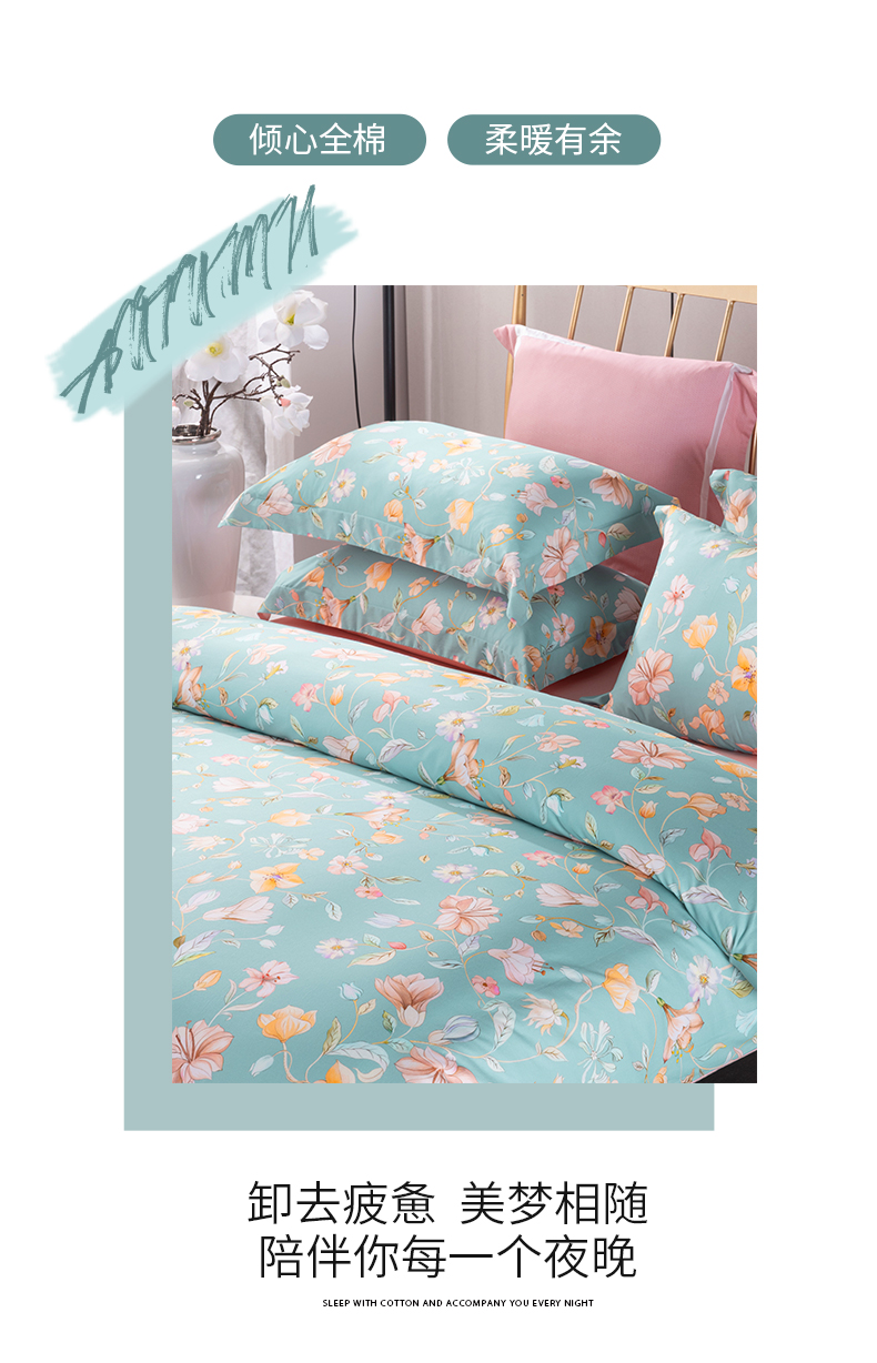 多喜爱-全棉优选四件套 吟花漫舞203*229cm 绿色 203*229cm