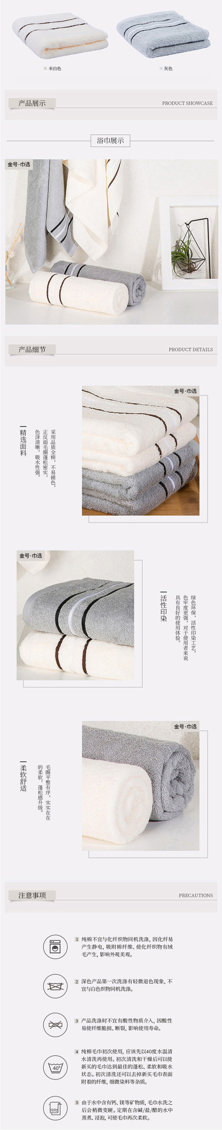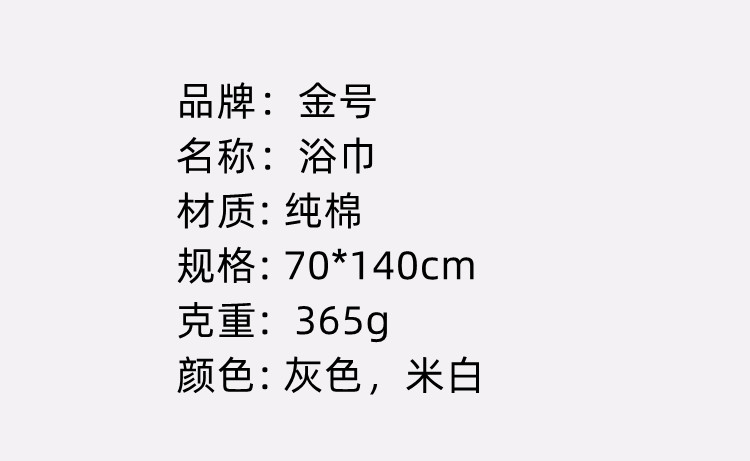 金号(KING SHORE) HY3118 70*140cm 浴巾单条巾选袋装(单位:袋) 灰色米白随机