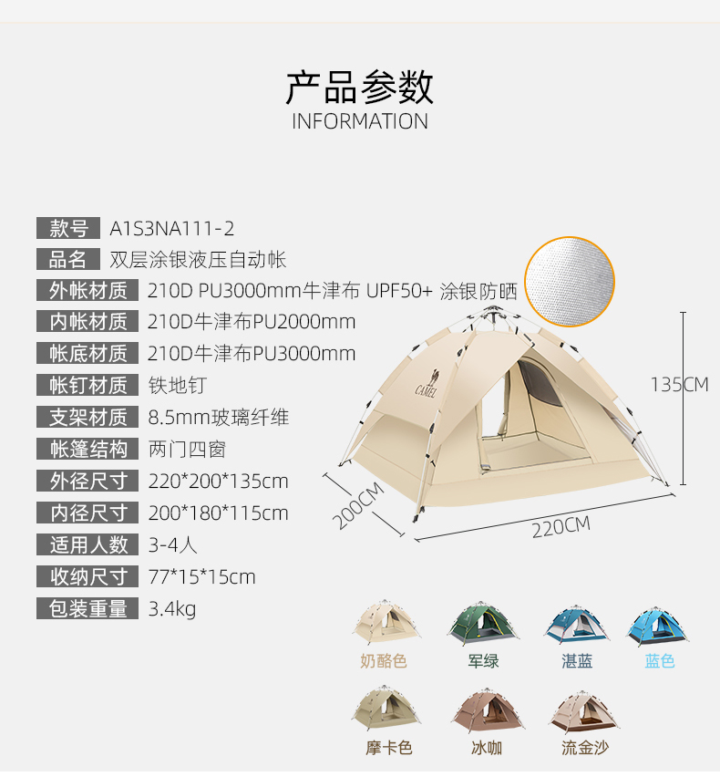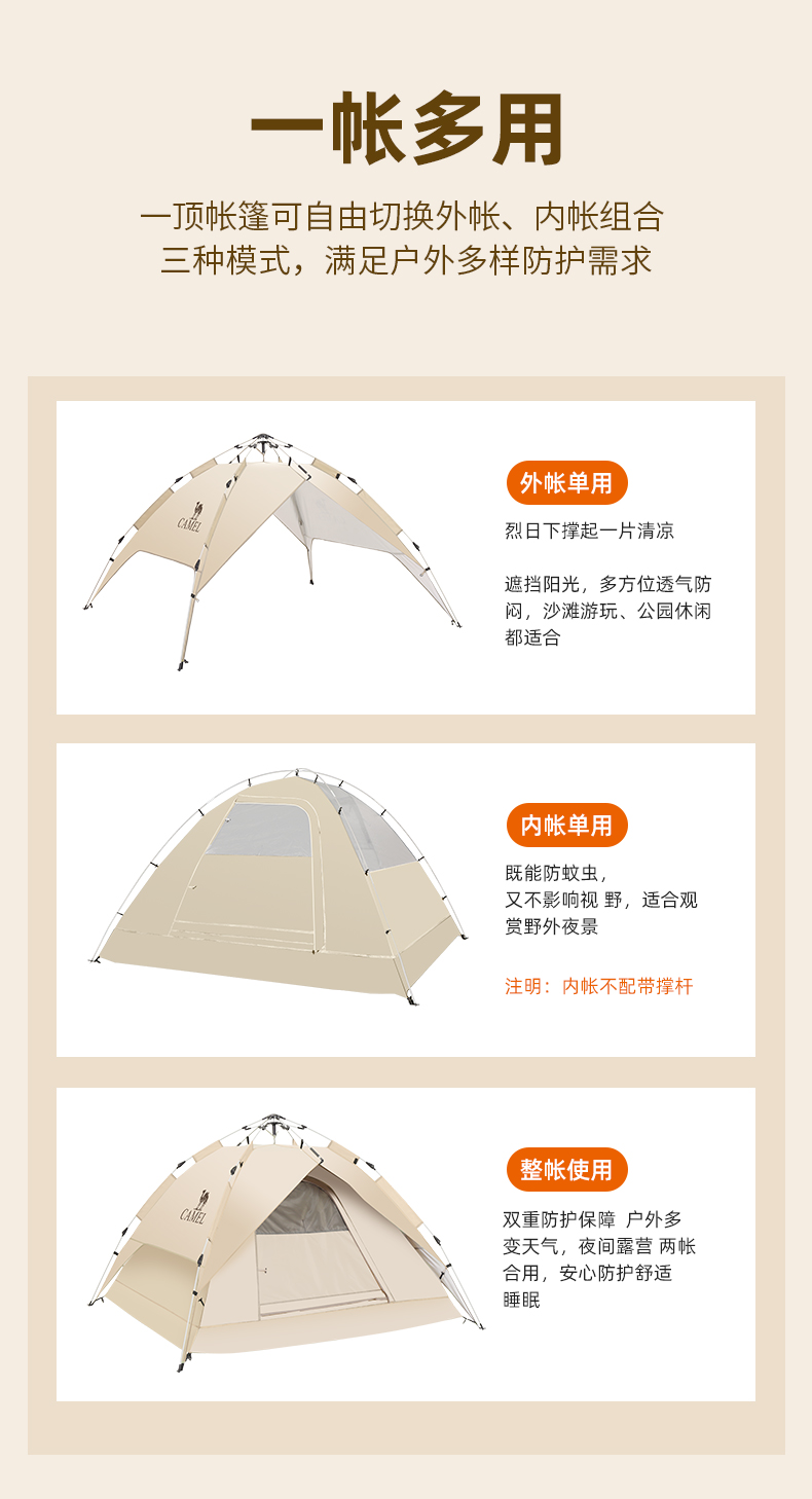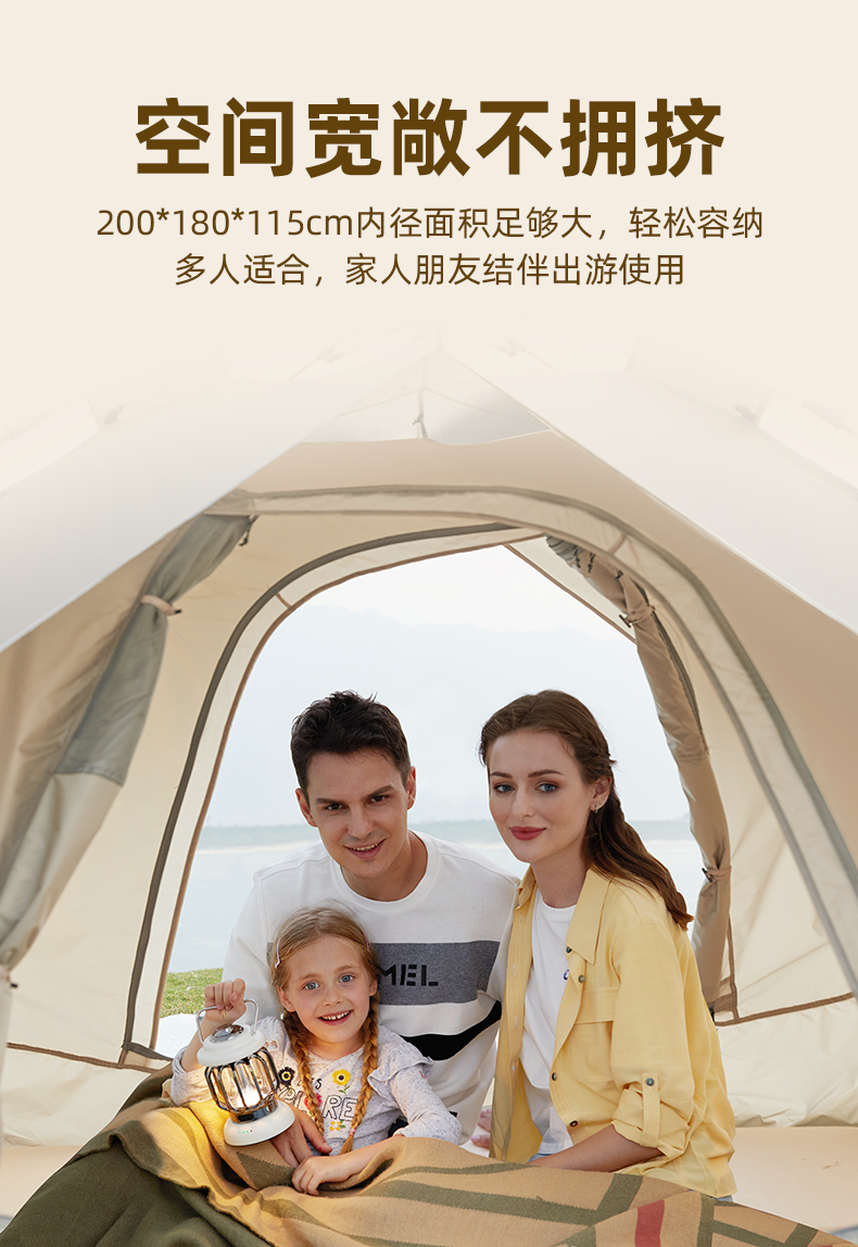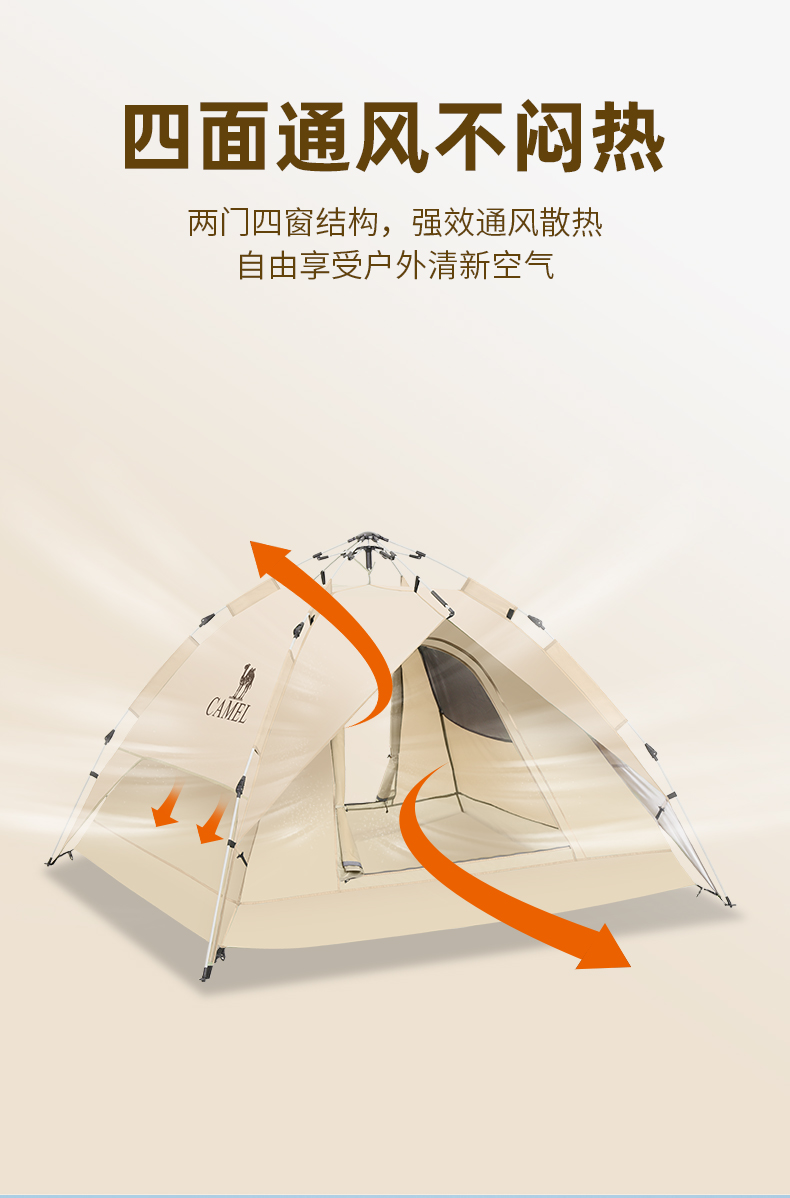 骆驼(CAMEL)户外便携式露营野营野外专业自动帐篷 A1S3NA111-2 个 流沙金 流沙金