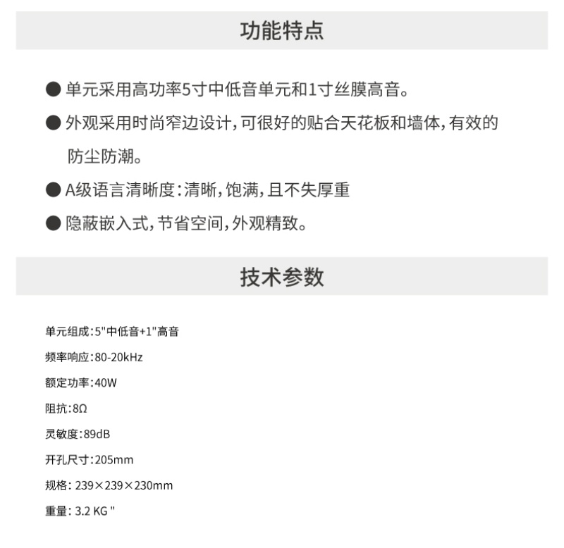 BBS 单5寸全频同轴吸顶扬声器 YS-150 只 白色