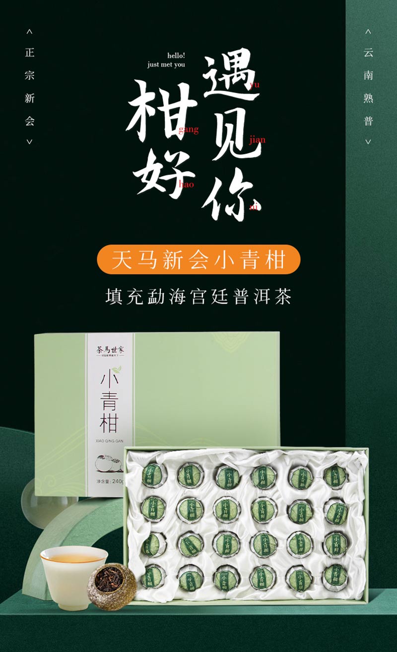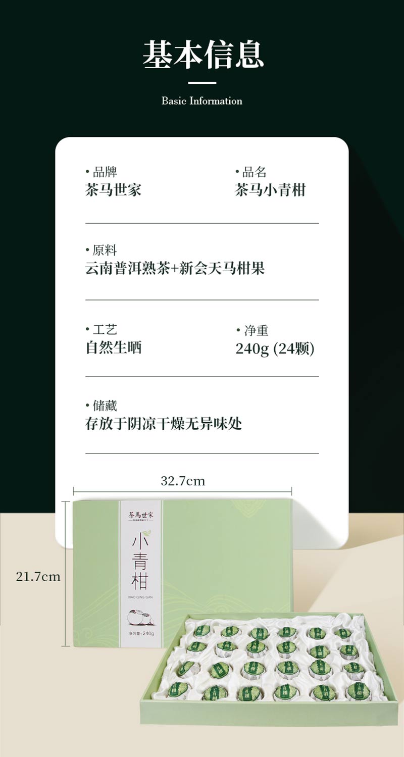 茶马世家小青柑新会天马正宗生晒陈皮普洱茶熟茶柑普茶小青桔礼盒装茶叶 精美茶礼24粒装 绿色